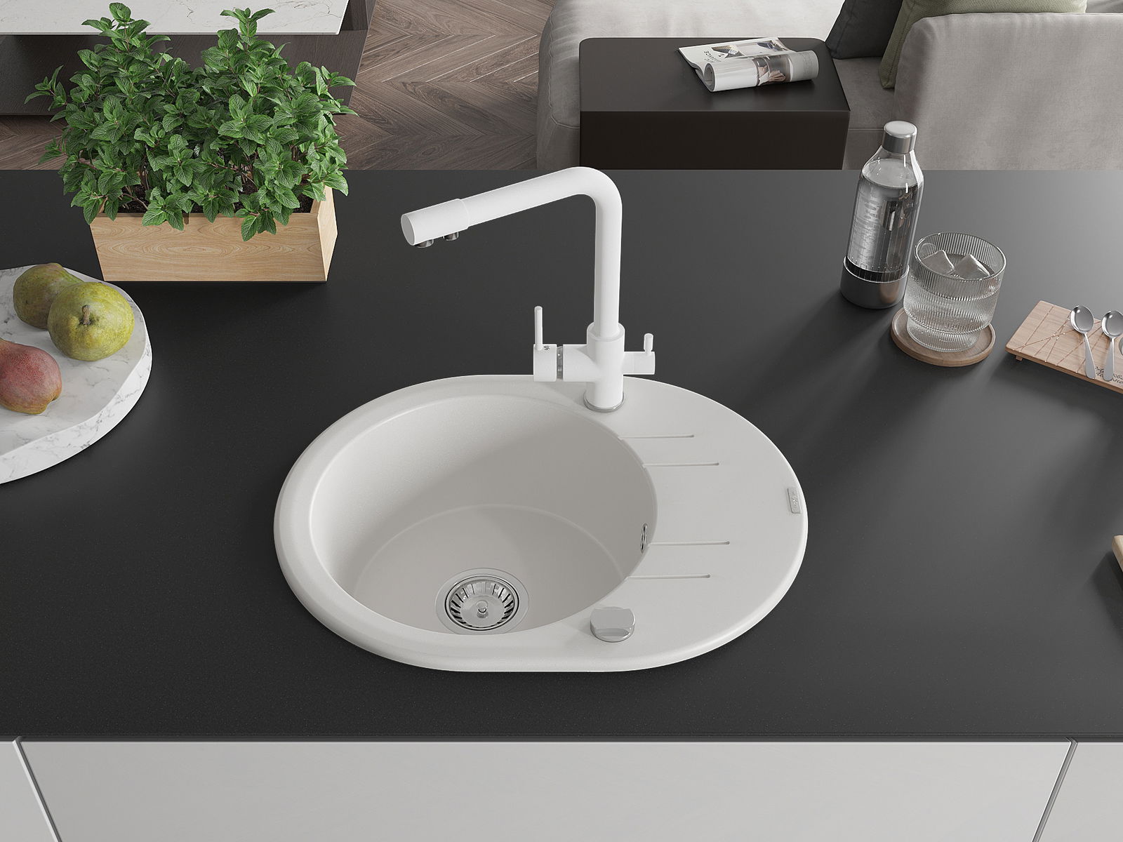 The surface of the sink is resistant to stains and discoloration, thanks to which it is easy to clean and retains its color for a long time. Aesthetic and practically complementing every kitchen.