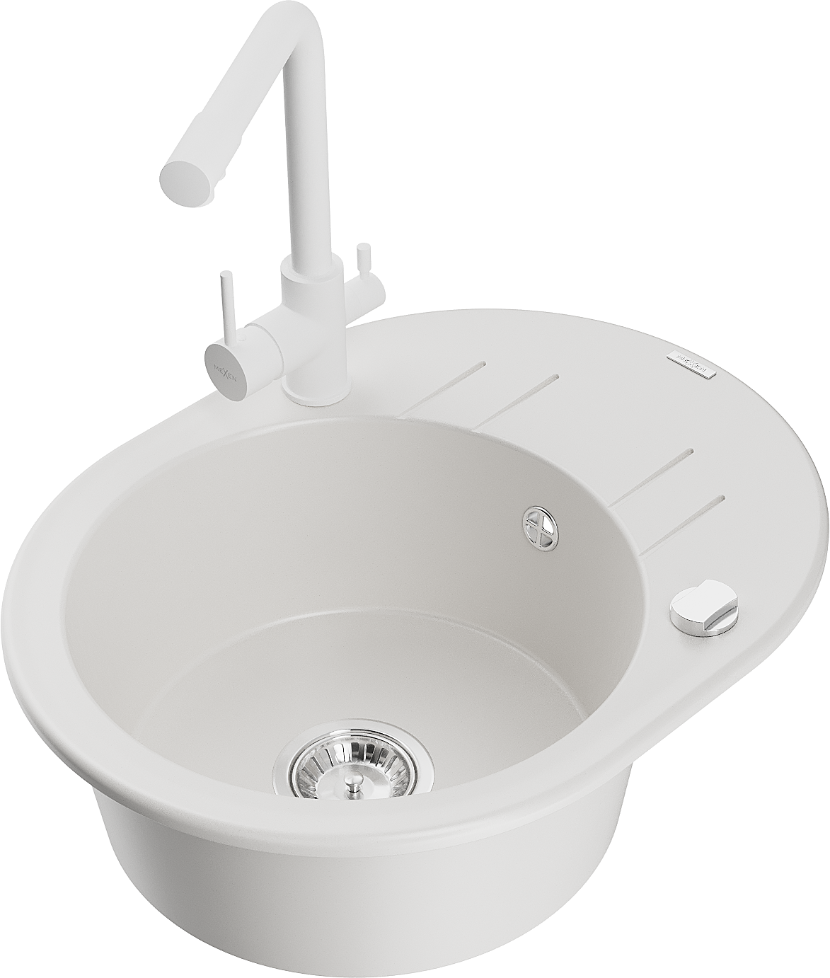 Mexen Kevin 1-bowl Granite Sink with Drainer and Duero Kitchen Tap, White - 6517-20-671600-20