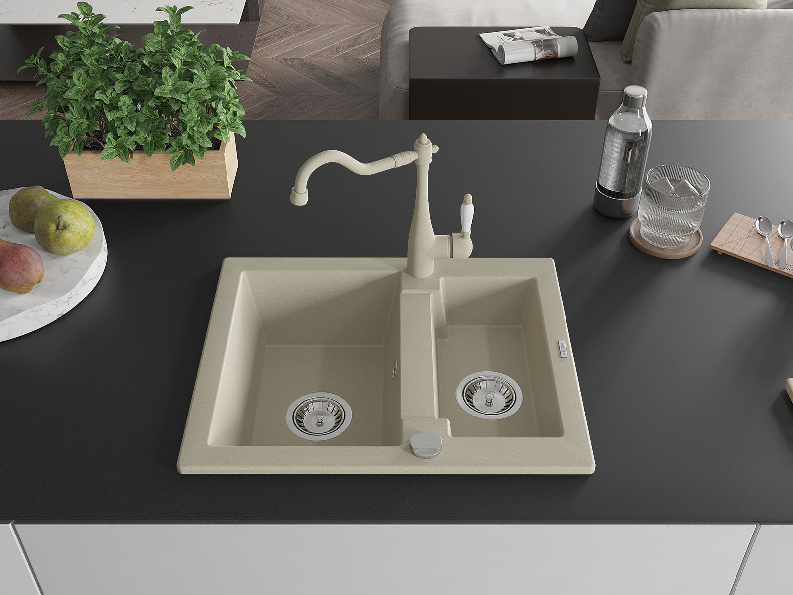 The sink is made of high quality granite. It is an elegant and, above all, practical complement to every kitchen, regardless of its style. High quality and granite durability ensure many years of use.