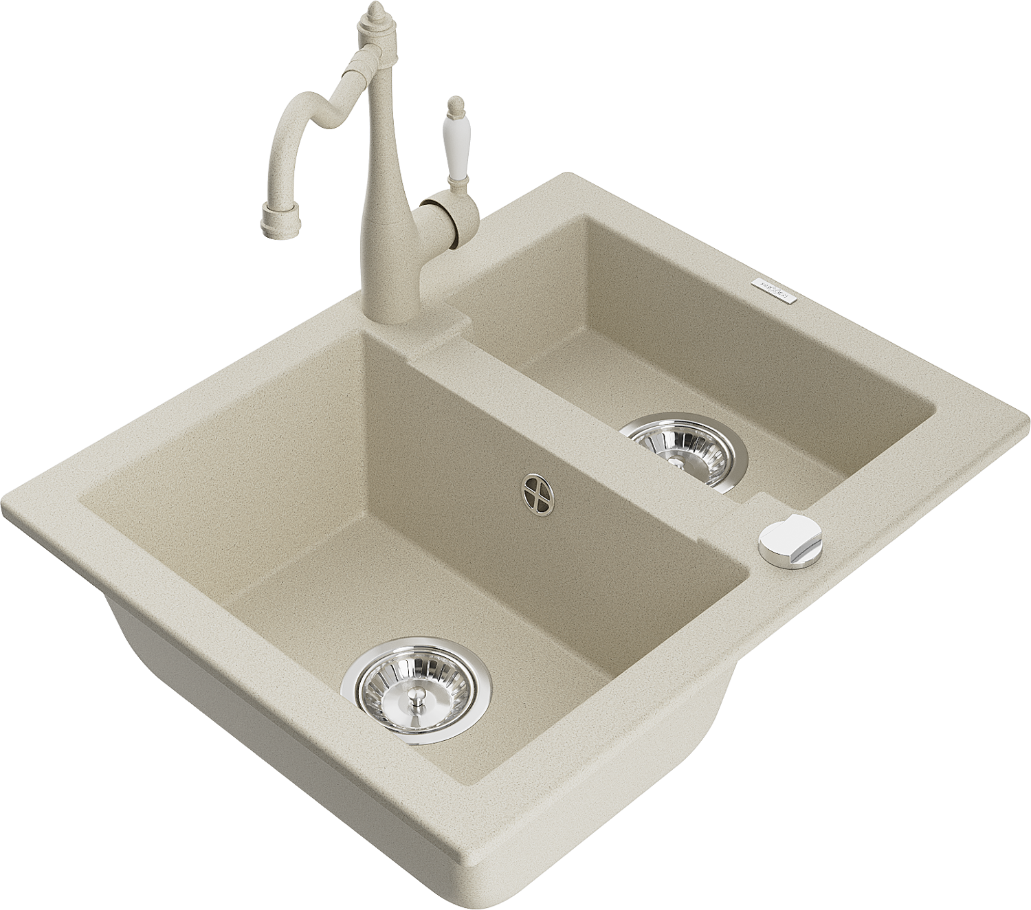 Mexen Carlos granite kitchen sink 1.5-bowl with Carla kitchen tap, beige - 6518-69-670700-69