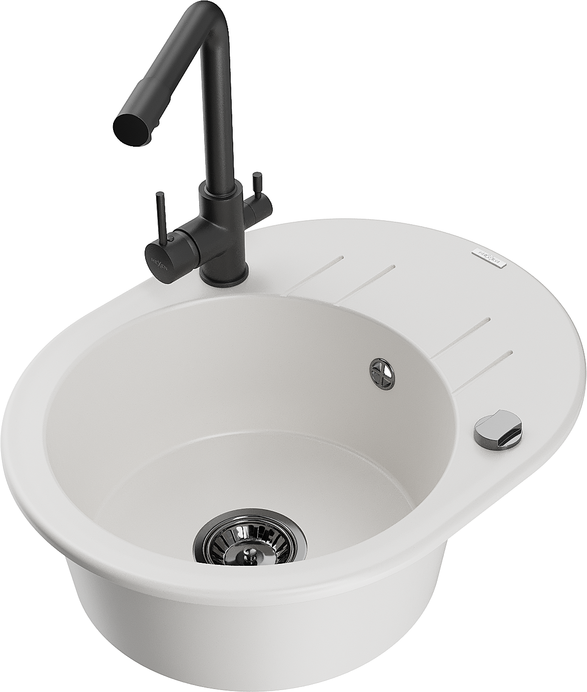 Mexen Kevin 1-bowl granite sink with drainer and Duero kitchen tap, white - 6517-20-671600-70