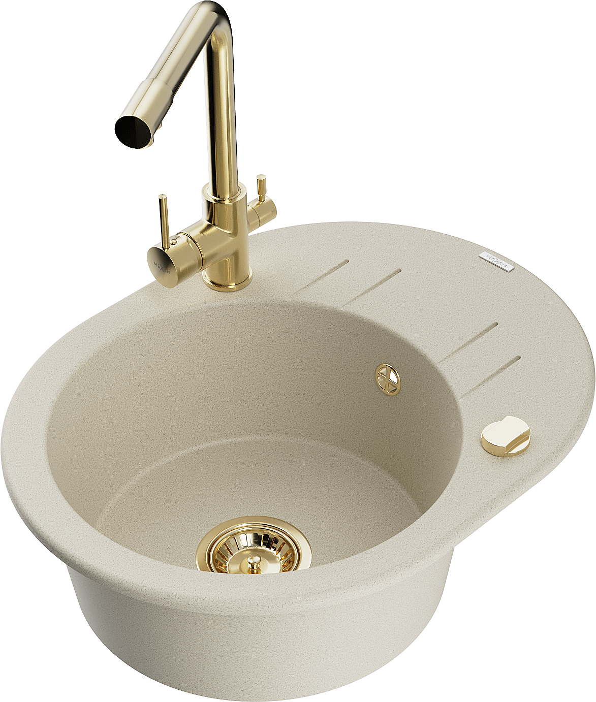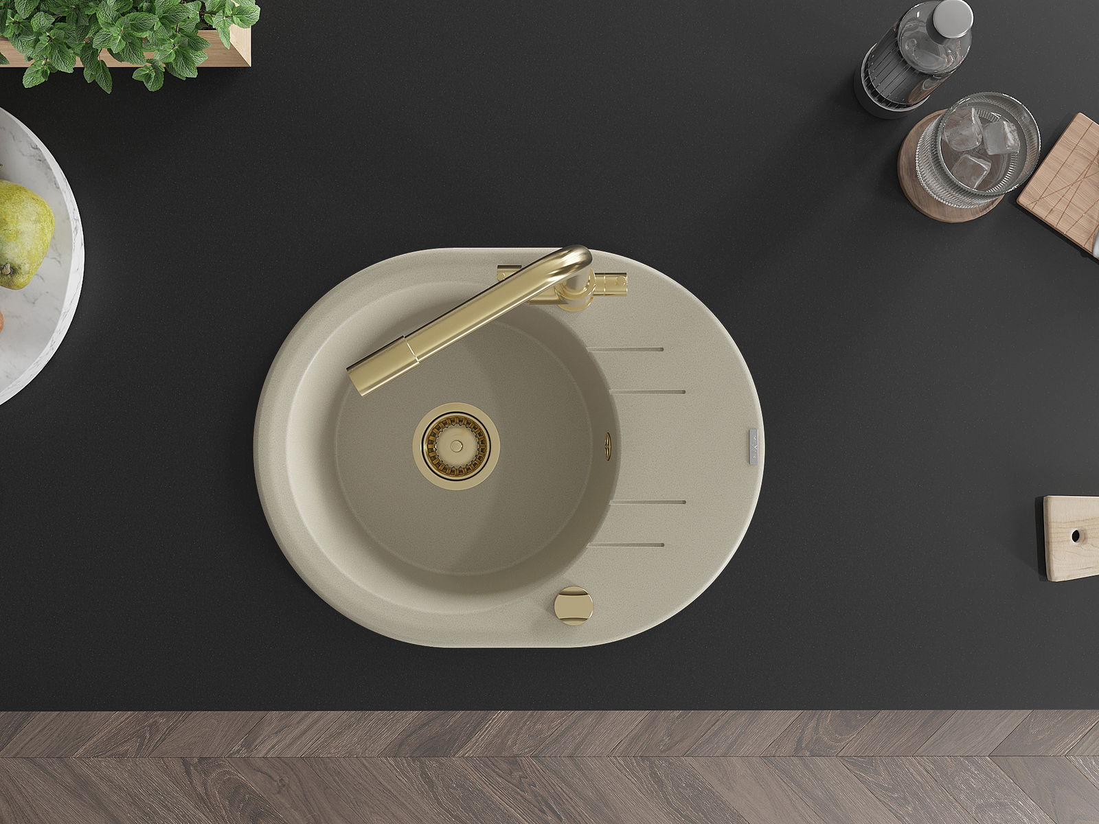 Mexen Kevin single-bowl granite sink with drainer and Duero kitchen tap, beige - 6517-69-671600-50