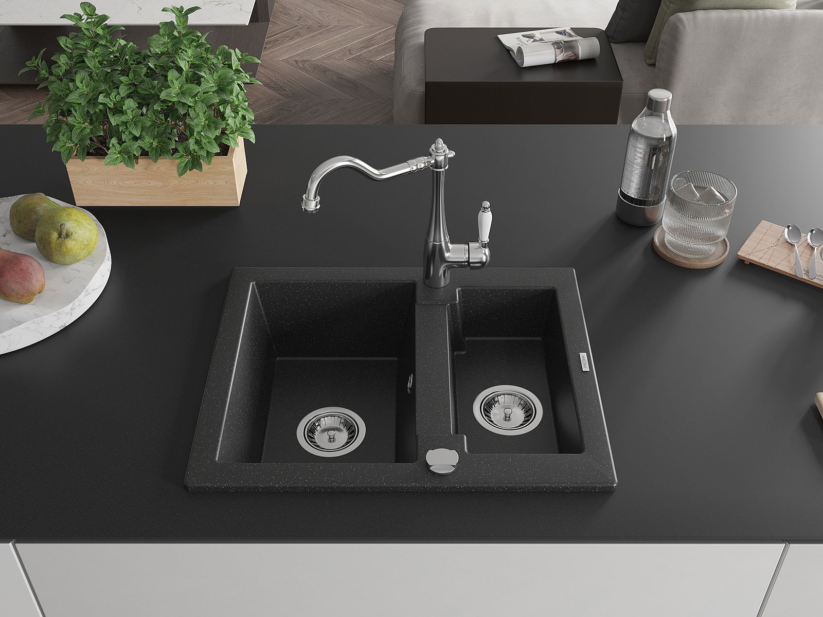 The sink is made of high quality granite. It is an elegant and, above all, practical complement to every kitchen, regardless of its style. High quality and granite durability ensure many years of use.