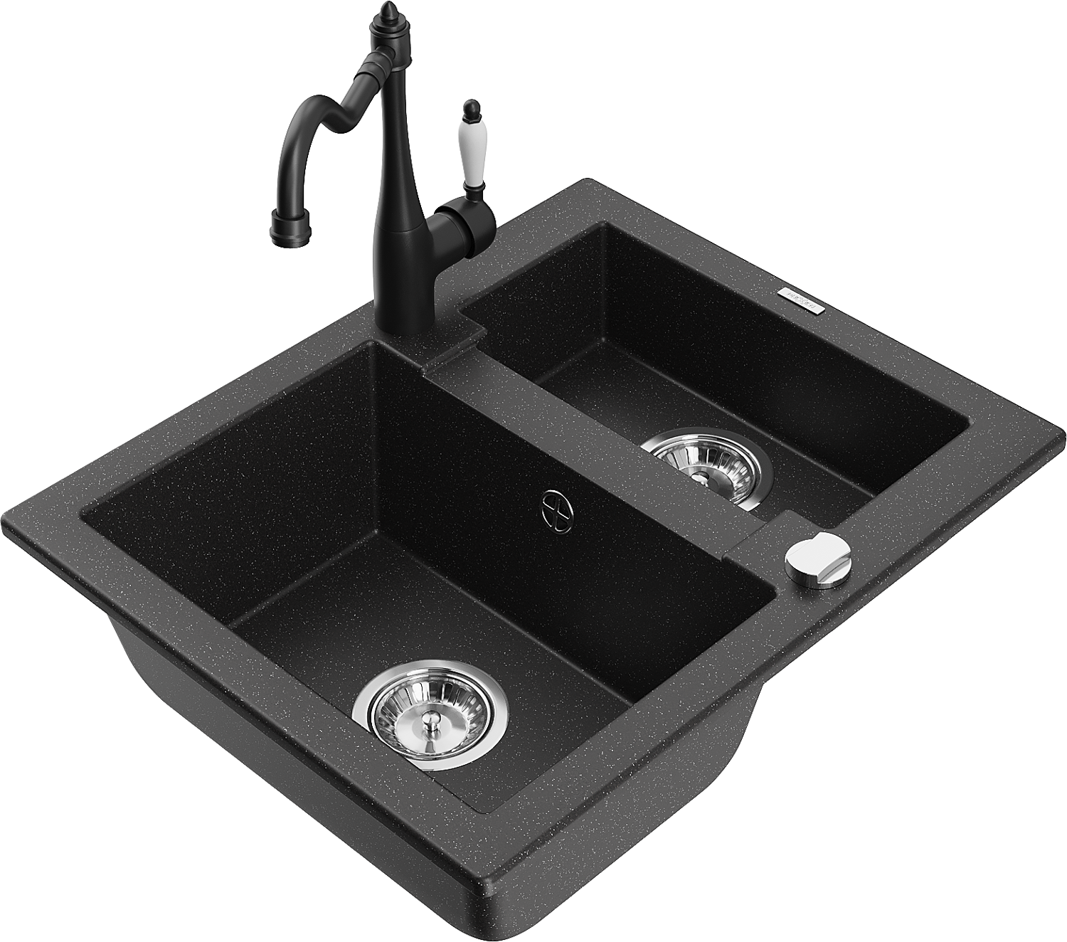 Mexen Carlos granite sink 1.5-bowl with Carla kitchen tap, black/silver metallic - 6518-73-670700-70