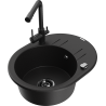 Mexen Kevin single-bowl granite sink with drainer and Duero kitchen tap, black/silver metallic - 6517-73-671600-70-B