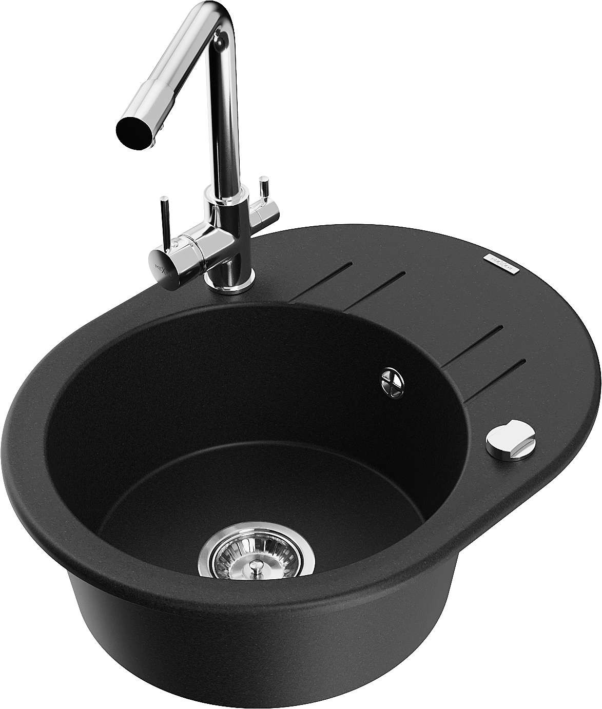 Mexen Kevin granite sink 1-bowl with drainer and Duero kitchen tap, black - 6517-77-671600-00