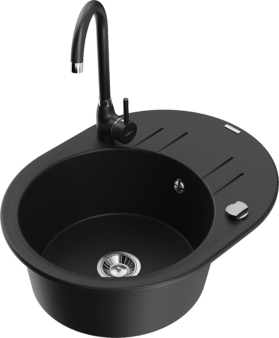 Mexen Kevin granite 1-bowl sink with drainer and Telma kitchen tap, black - 6517-77-670200-70
