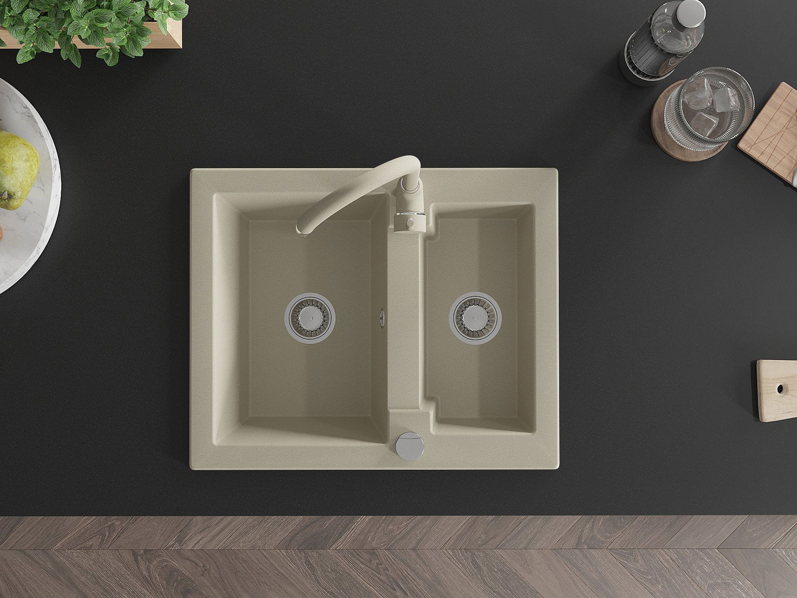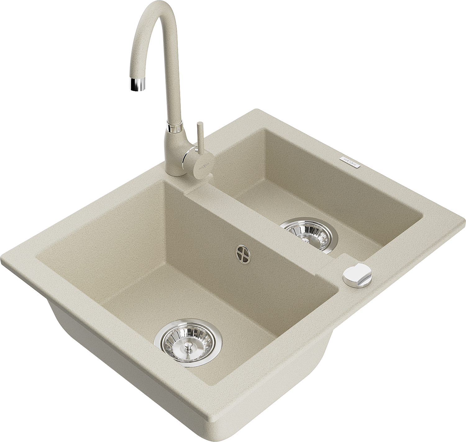 Mexen Carlos 1.5-bowl granite sink with Telma kitchen tap, beige - 6518-69-670200-69