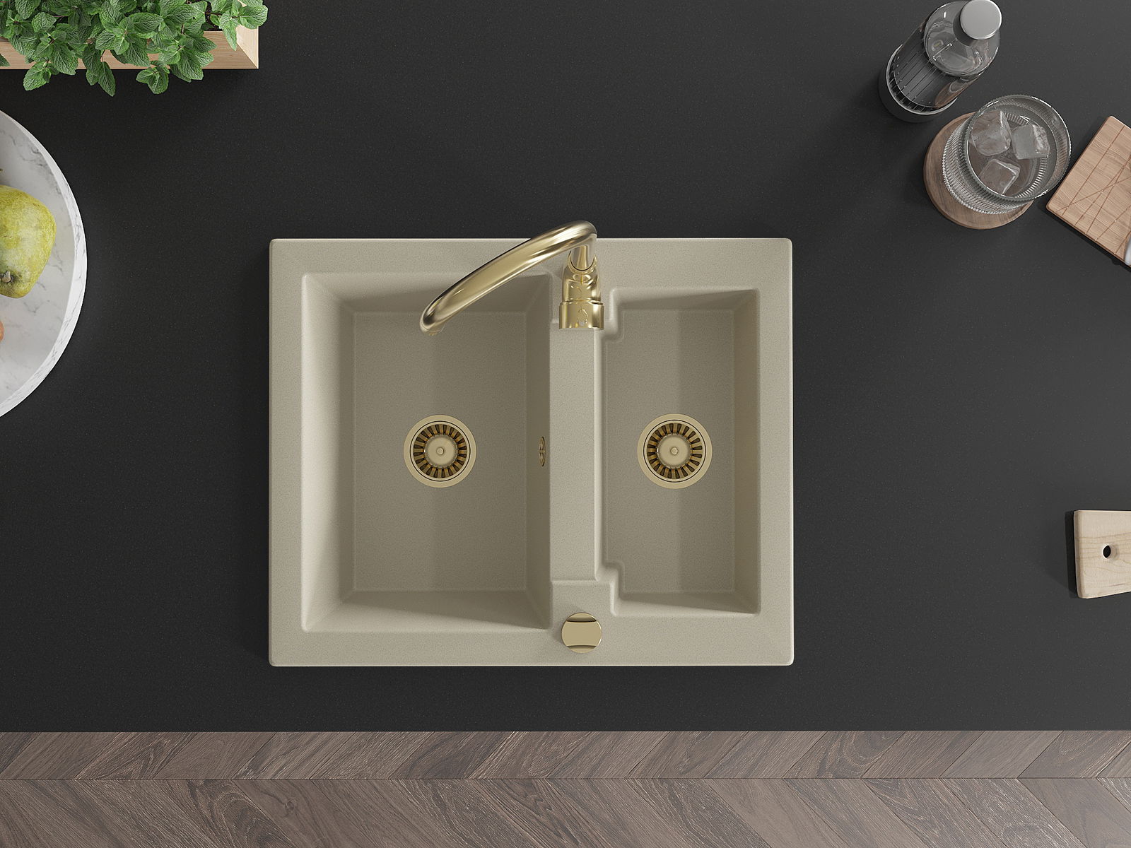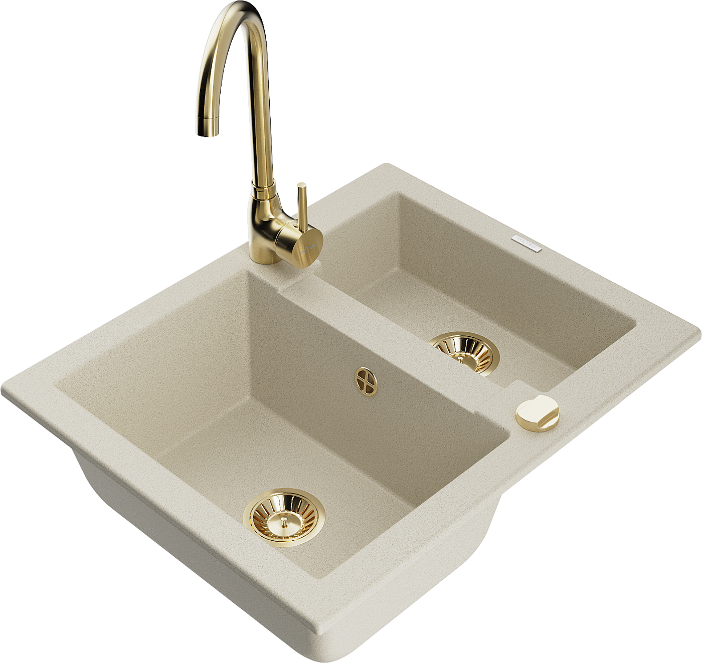 Mexen Carlos granite sink 1.5-bowl with Telma kitchen tap, beige - 6518-69-670200-50