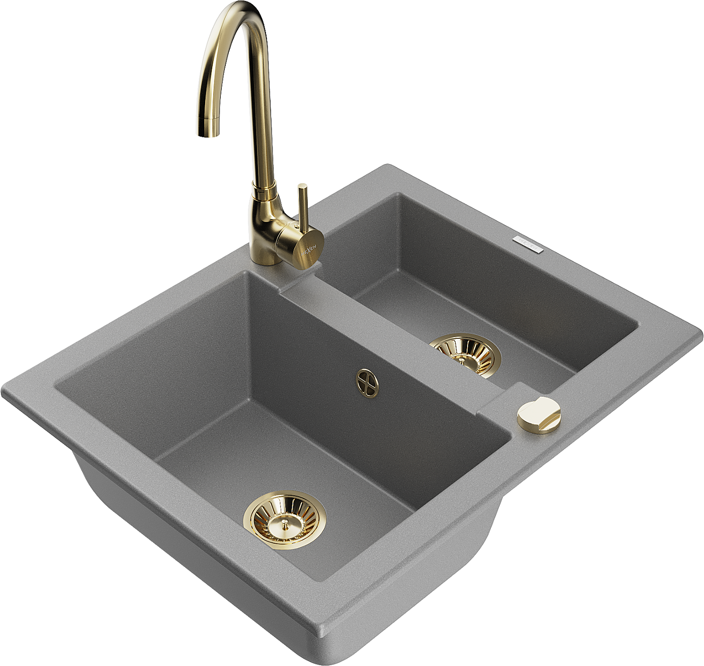 Mexen Carlos granite sink 1.5-bowl with Telma kitchen tap, grey - 6518-71-670200-50