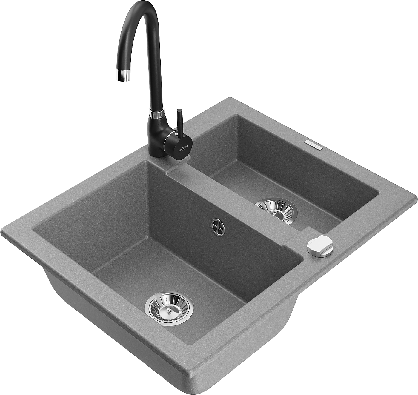 Mexen Carlos granite sink 1.5-bowl with Telma kitchen tap, grey - 6518-71-670200-70