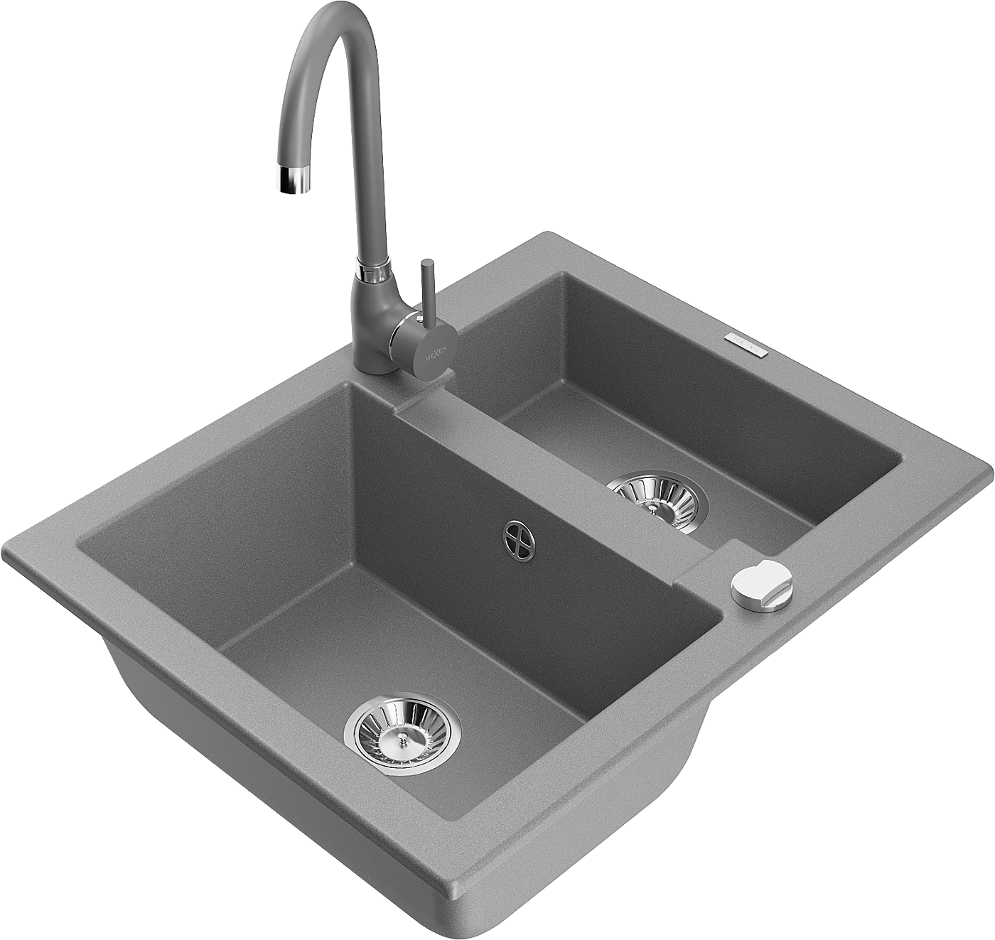 Mexen Carlos 1.5-bowl granite kitchen sink with Telma kitchen tap, grey - 6518-71-670200-71