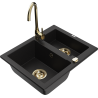 Mexen Carlos granite sink 1.5-bowl with Telma kitchen tap, speckled black - 6518-76-670200-50