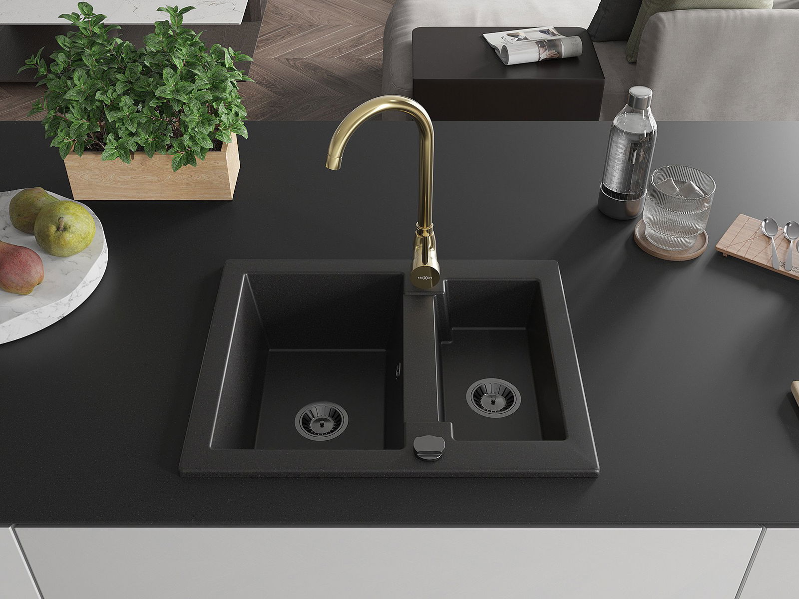 The sink is made of high quality granite. It is an elegant and, above all, practical complement to every kitchen, regardless of its style. High quality and granite durability ensure many years of use.