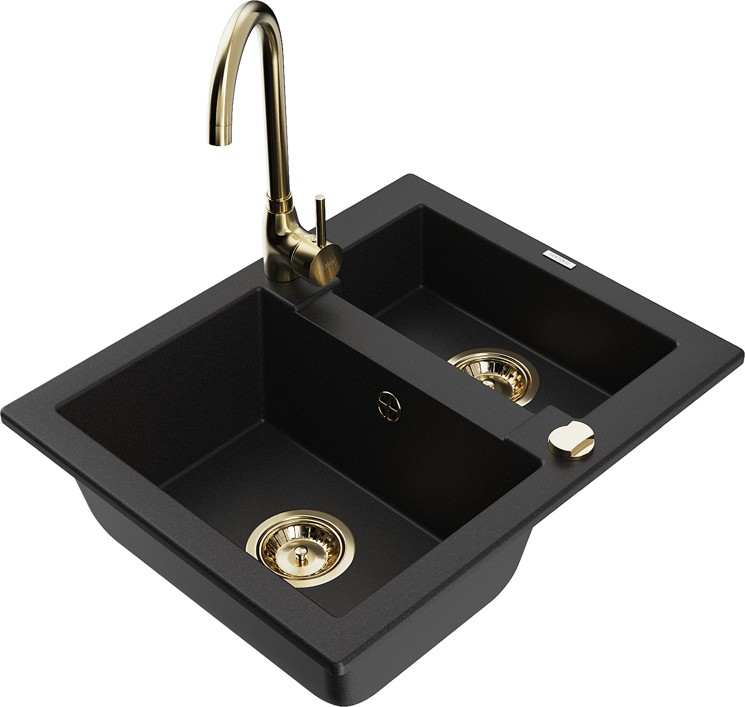 Mexen Carlos granite sink 1.5-bowl with Telma kitchen tap, black - 6518-77-670200-50