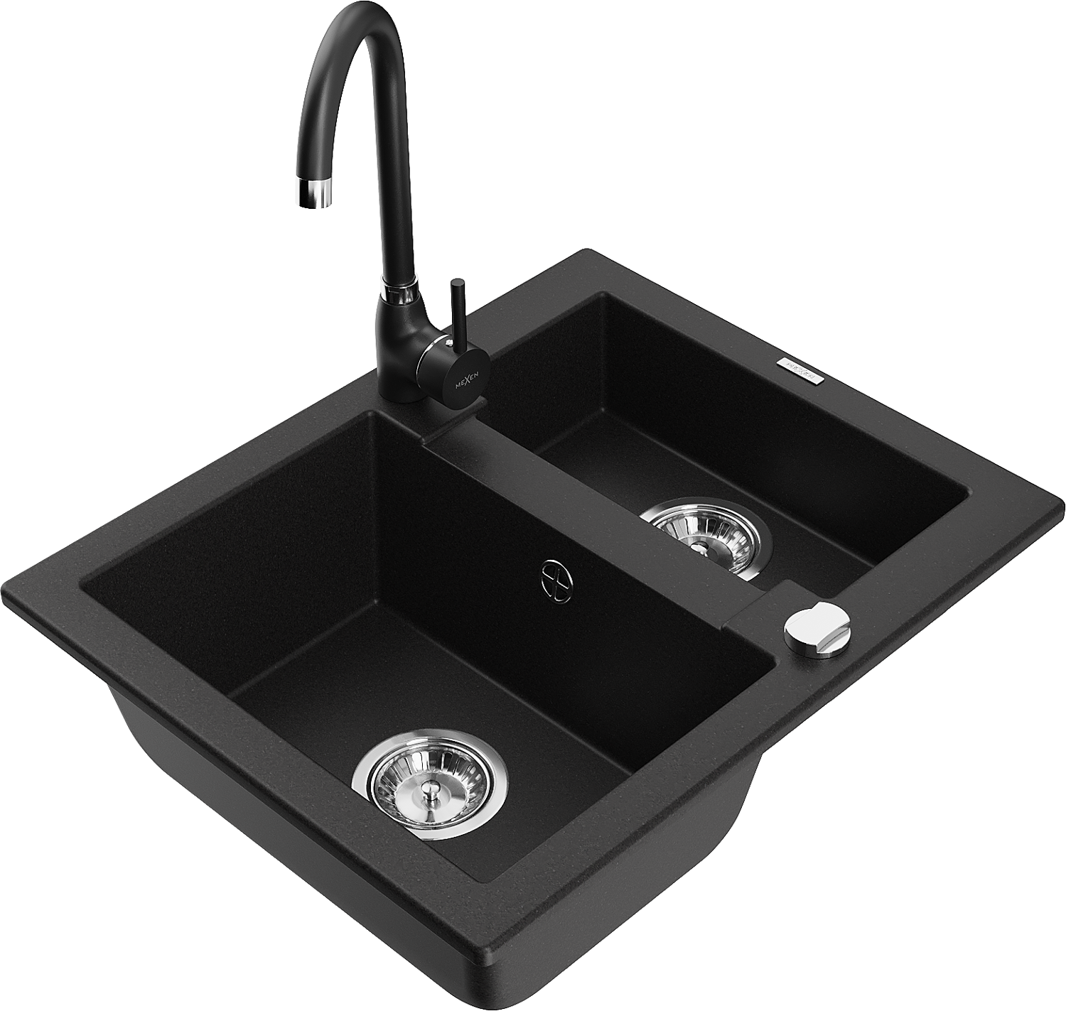 Mexen Carlos granite sink 1.5-bowl with Telma kitchen tap, black - 6518-77-670200-70