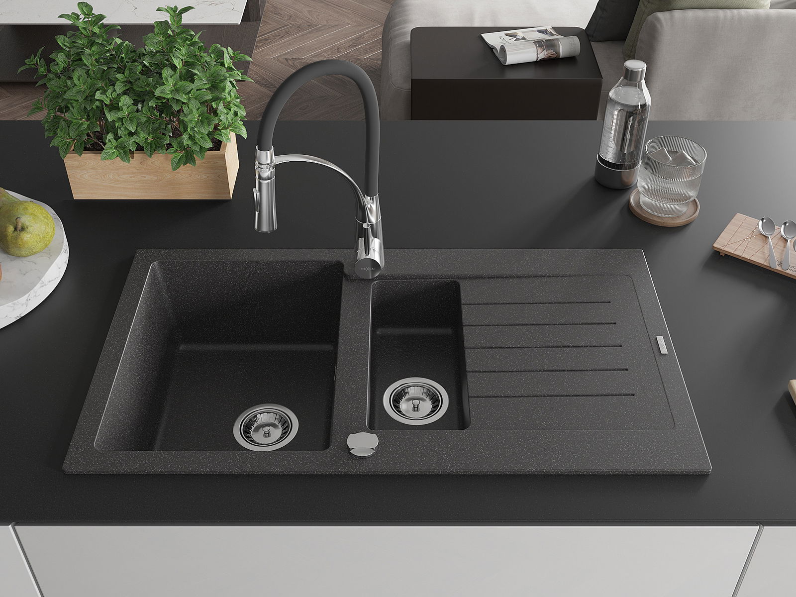 The sink is made of high quality granite. It is an elegant and, above all, practical complement to every kitchen, regardless of its style. High quality and granite durability ensure many years of use.