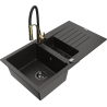Mexen Matias 1.5-bowl granite sink with drainer and Aster kitchen tap, black - 6502-77-73450-57-B