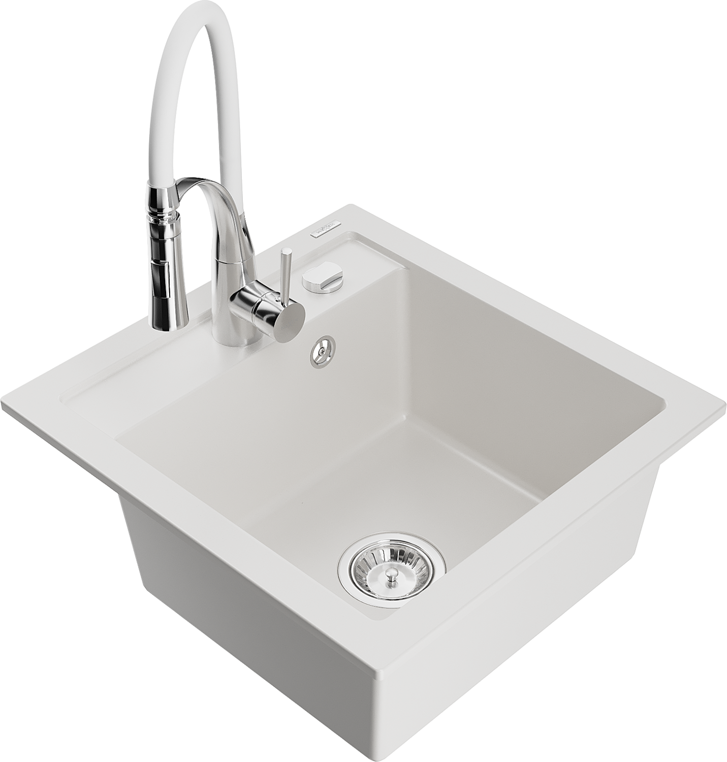 Mexen Vito 1-bowl granite sink with Aster kitchen tap, white - 6503-20-73450-02