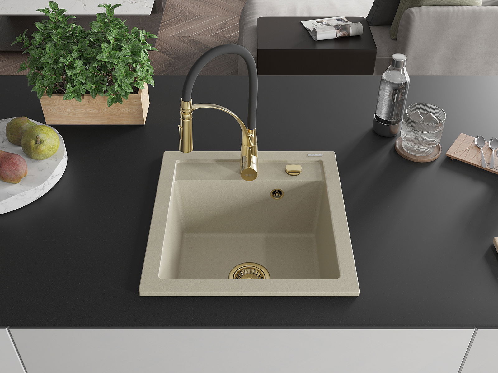 The surface of the sink is resistant to stains and discoloration, thanks to which it is easy to clean and retains its color for a long time. Aesthetic and practically complementing every kitchen.