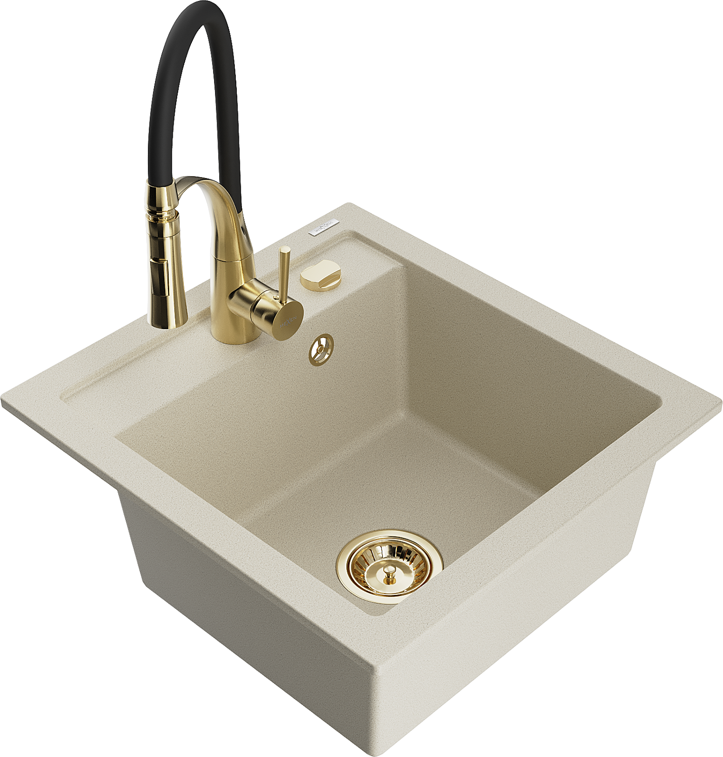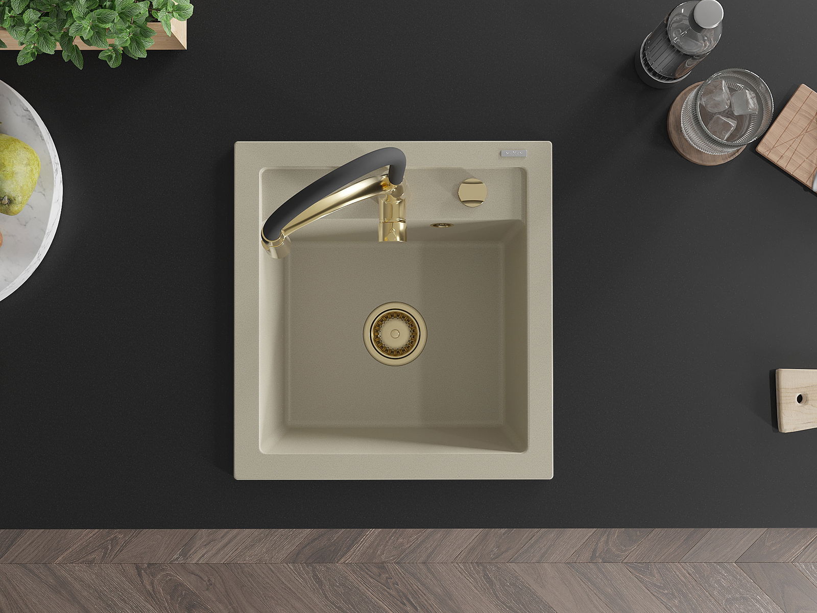 Mexen Vito Granite Kitchen Sink 1-Bowl with Aster Tap, Beige - 6503-69-73450-57-G