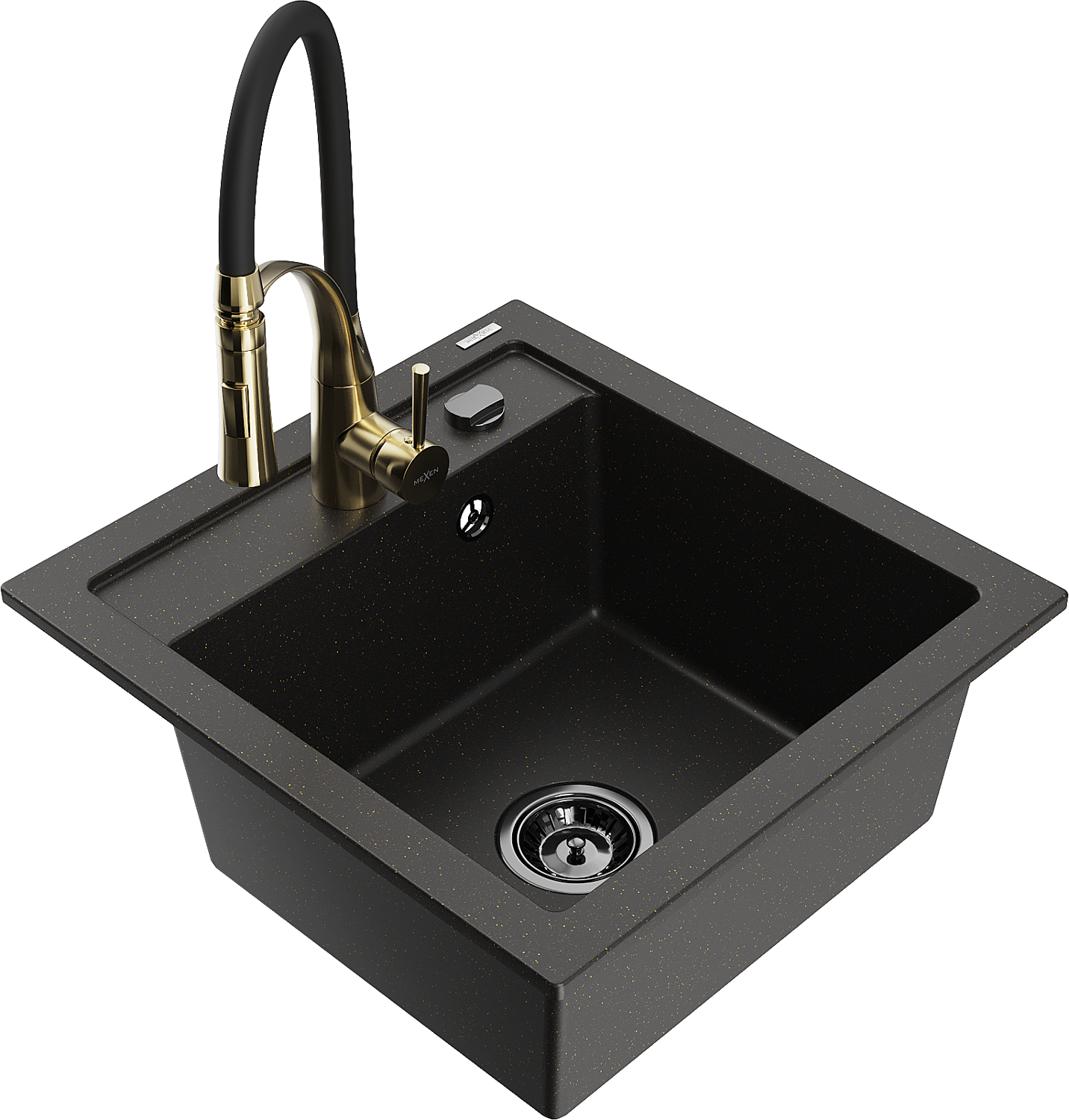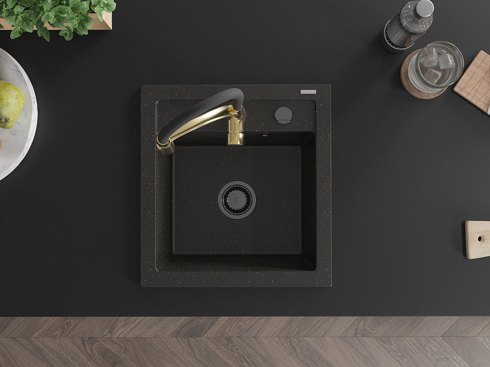 Mexen Vito 1-basin granite sink with Aster kitchen tap, black/gold metallic- 6503-75-73450-57-B