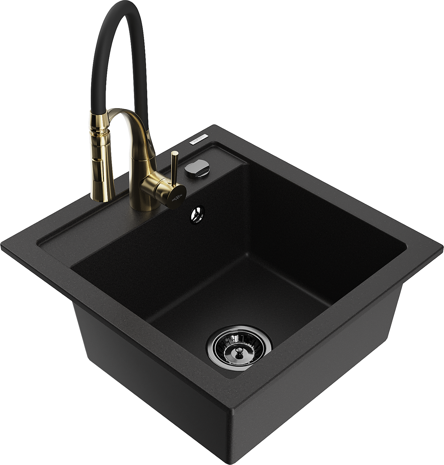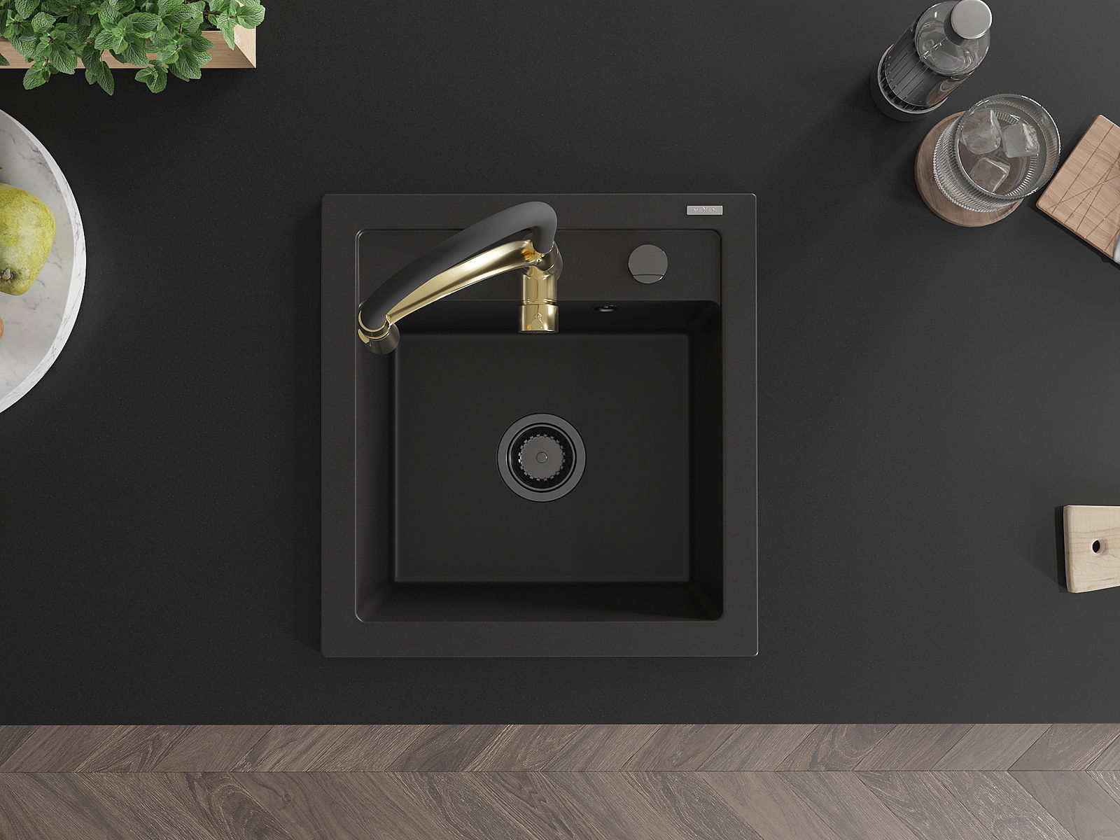 Mexen Vito granite kitchen sink 1-bowl with kitchen tap Aster, black - 6503-77-73450-57-B
