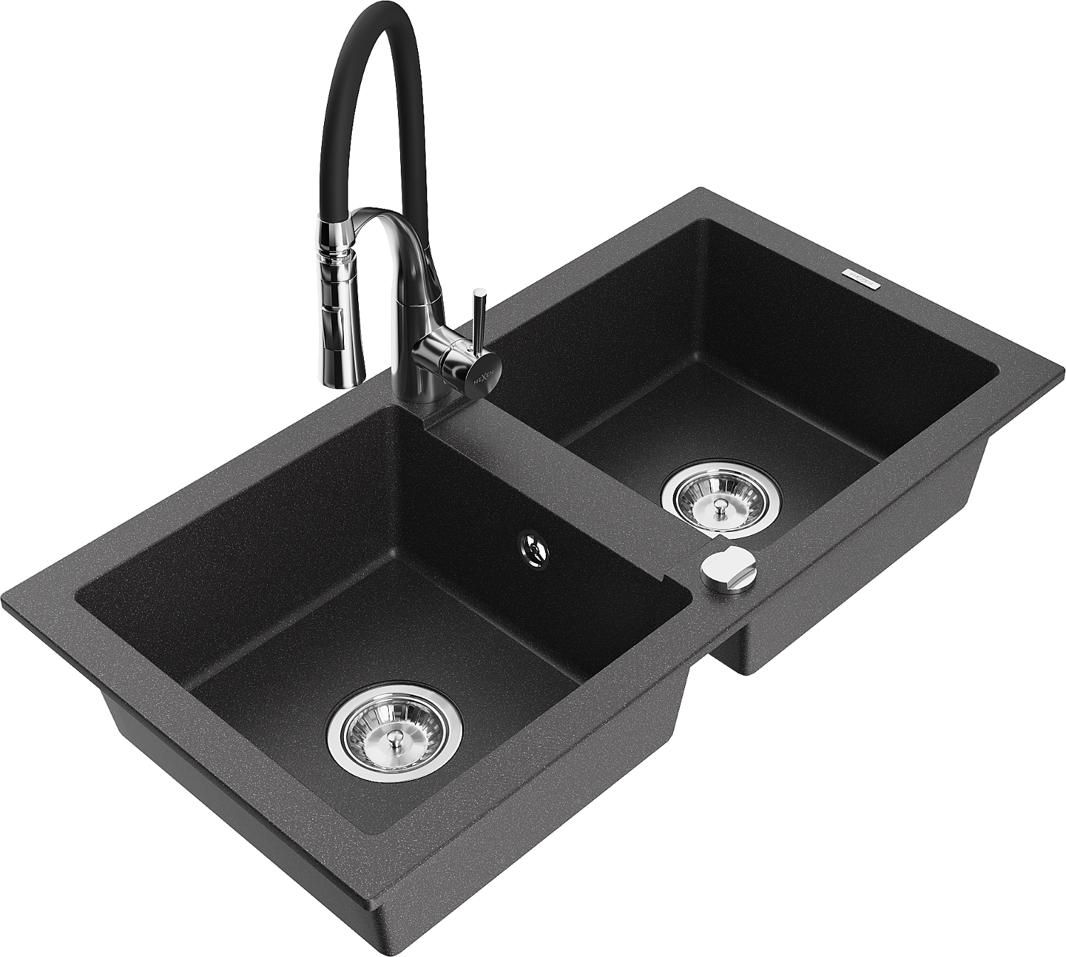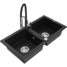 Mexen Mario granite sink 2-bowl with Aster kitchen tap, speckled black - 6504-76-73450-07