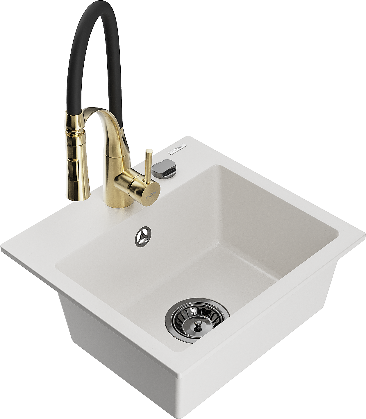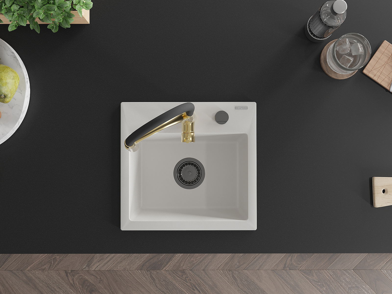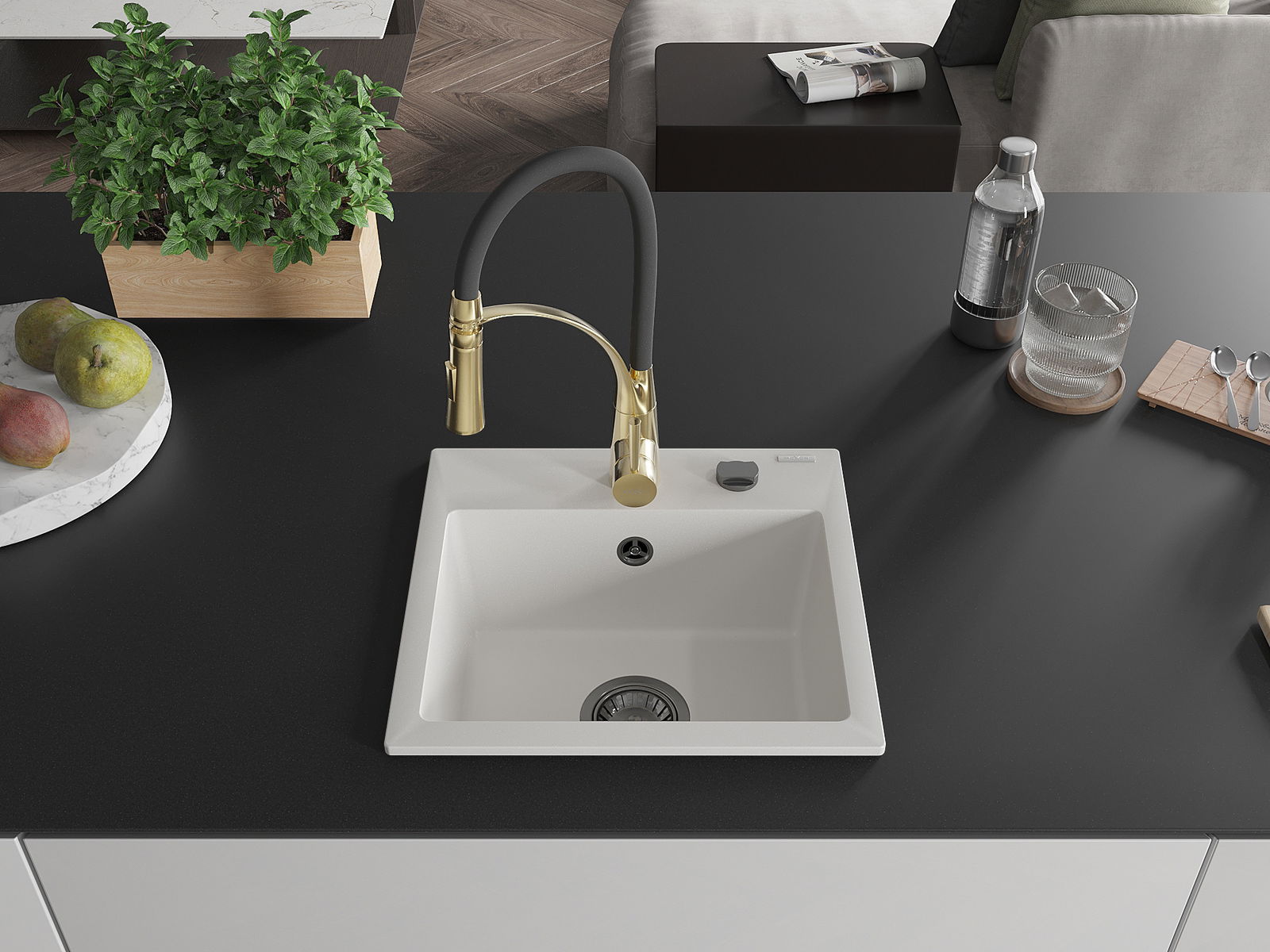 The surface of the sink is resistant to stains and discolouration, making it easy to maintain cleanliness and retain its colour for a long time of use. An aesthetic and practical addition to any kitchen.