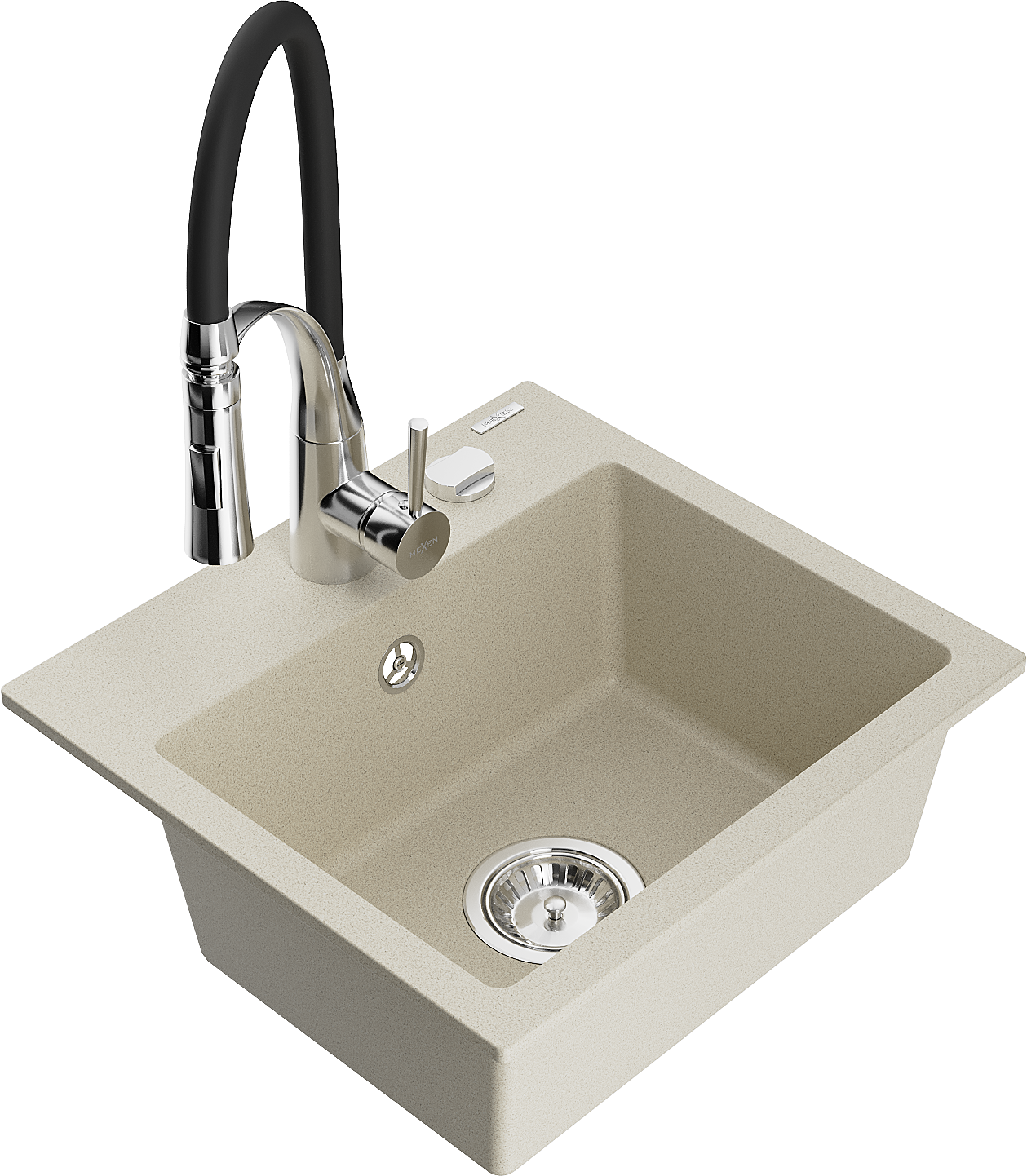 Mexen Milo 1-bowl granite sink with Aster kitchen tap, beige - 6505-69-73450-07