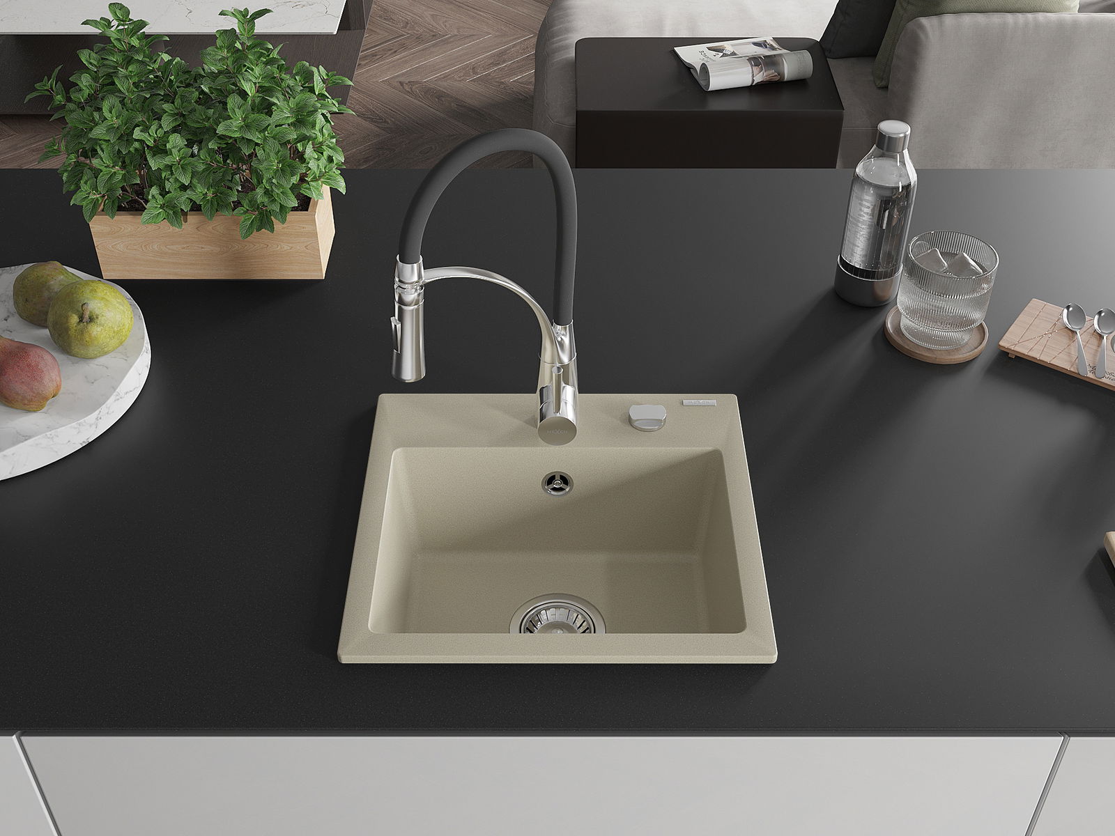 The sink is made from high-quality granite. It serves as an elegant and, above all, practical addition to any kitchen, regardless of its style. The high quality and durability of granite ensure many years of use.