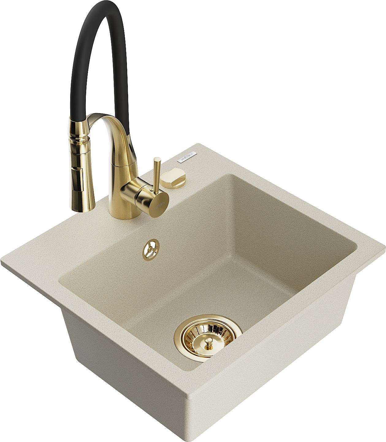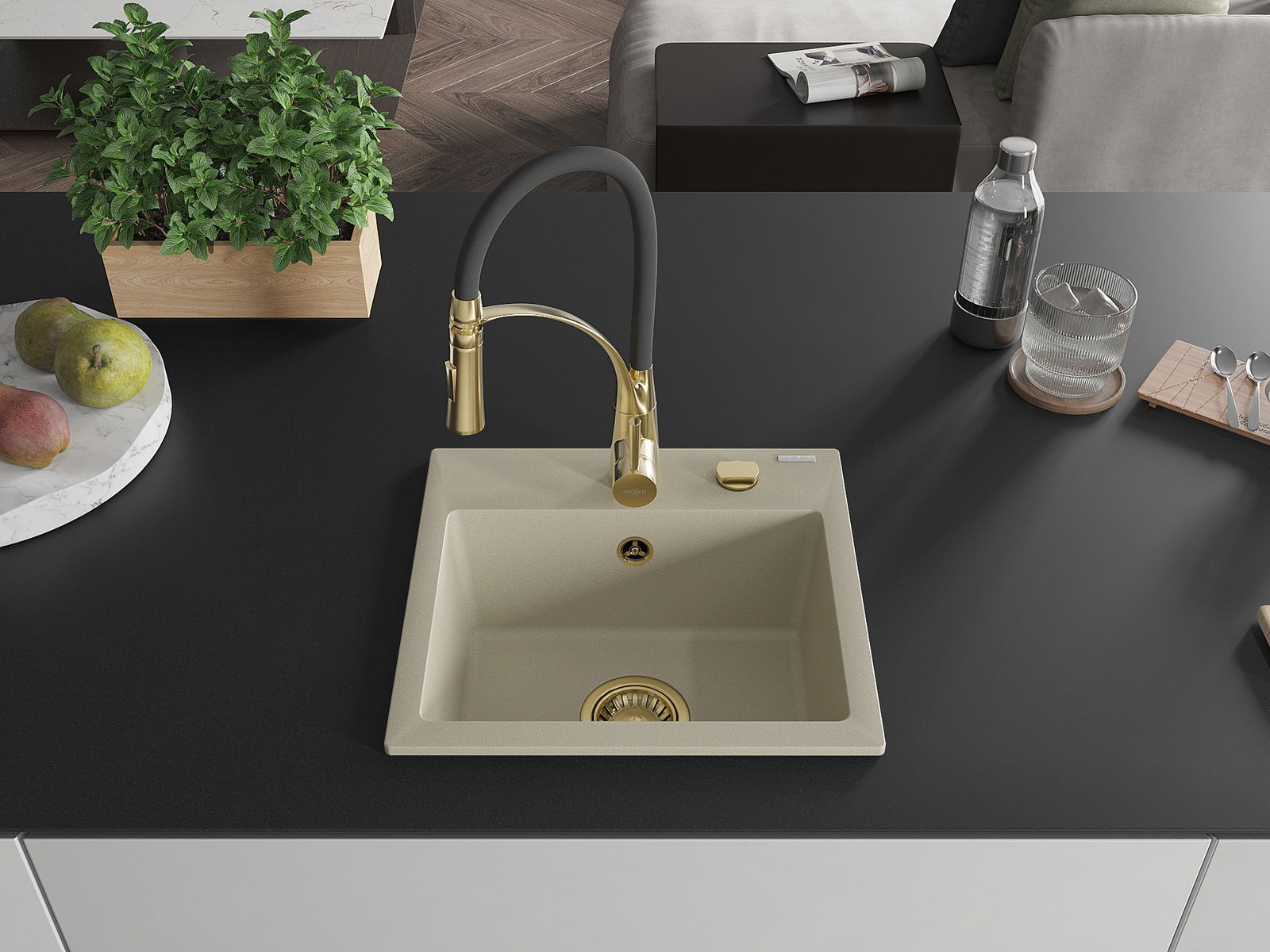 Mexen Milo 1-bowl Granite Sink with Aster Kitchen Tap, Beige - 6505-69-73450-57-G