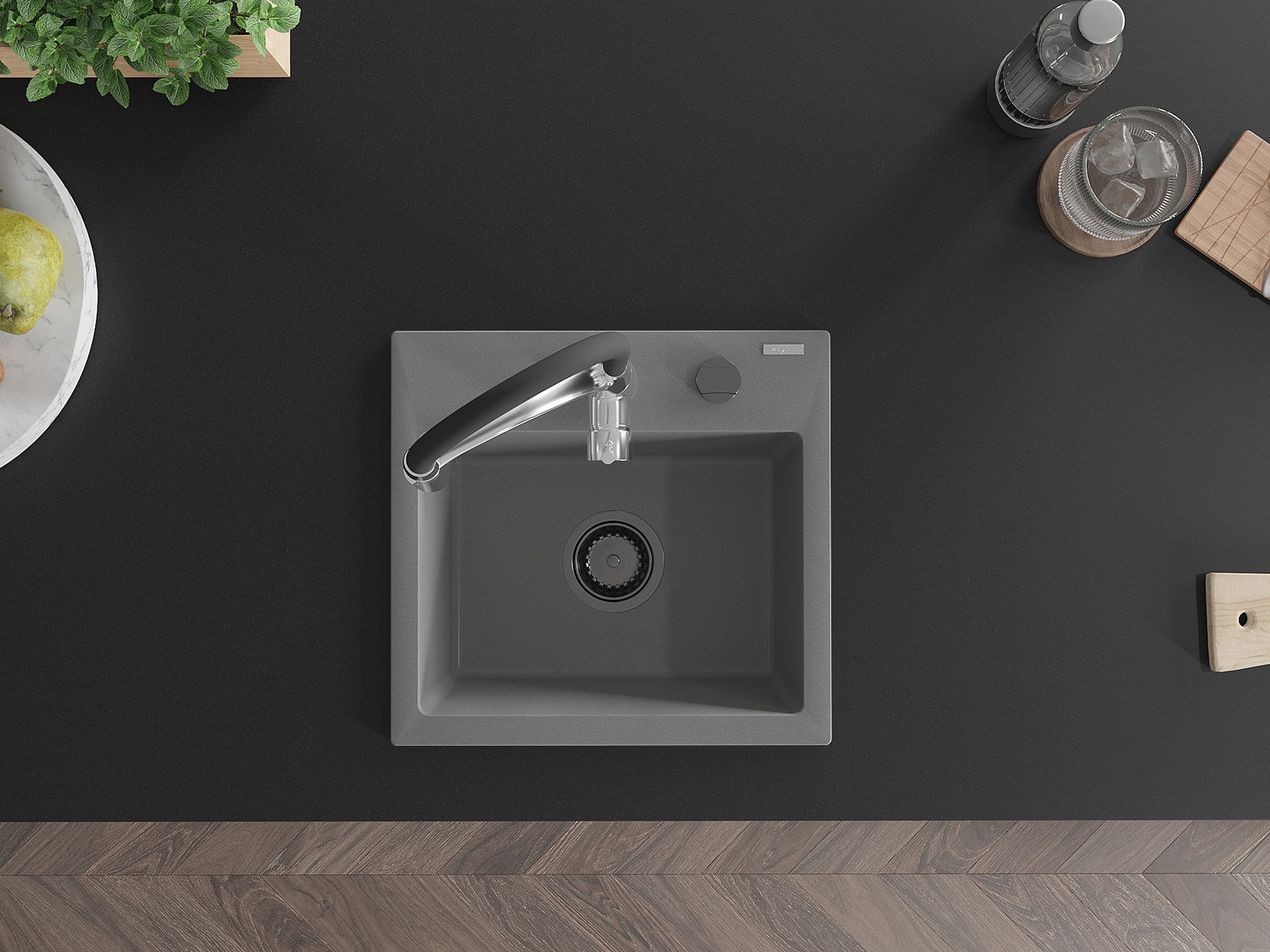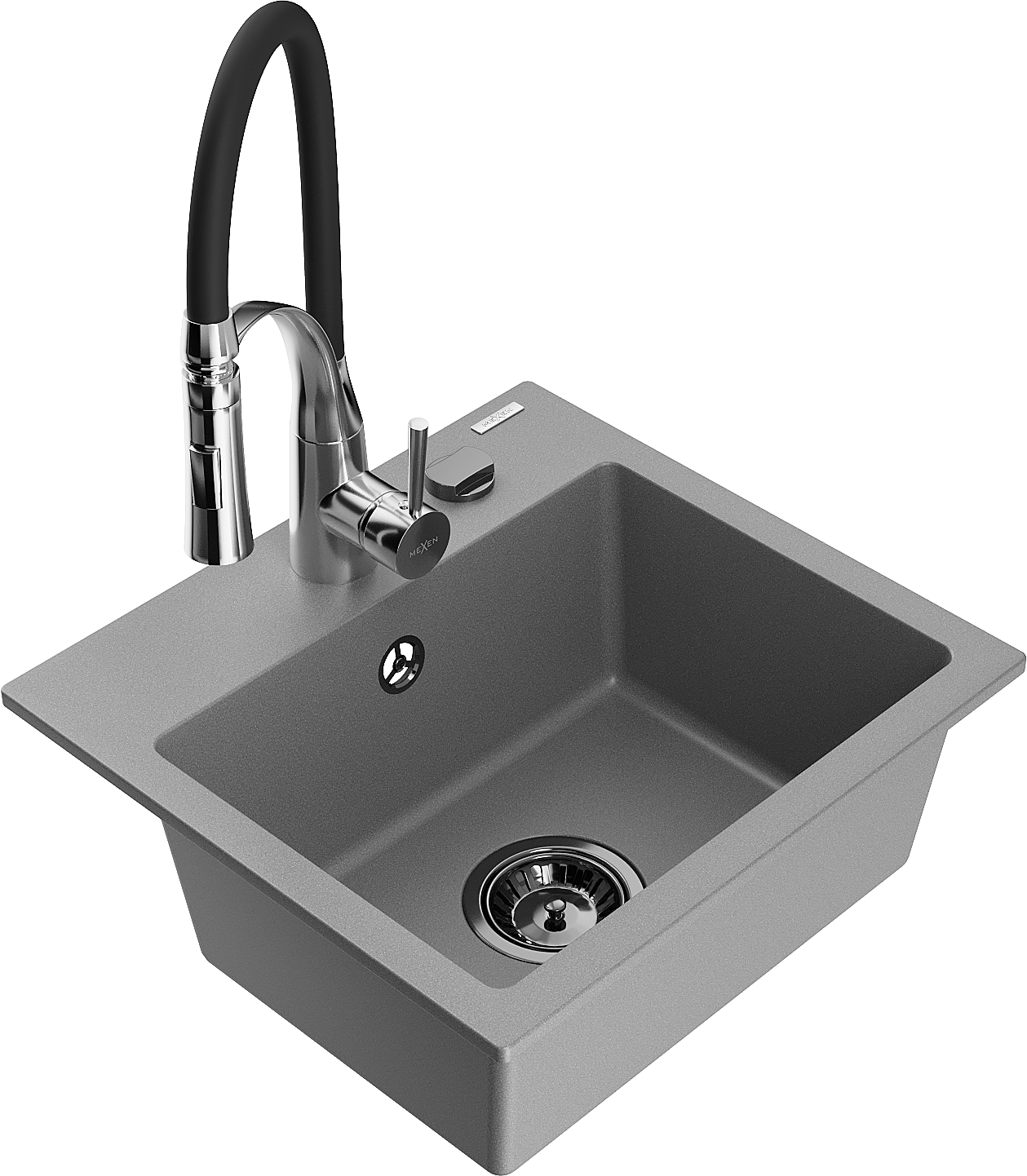 Mexen Milo 1-bowl granite sink with Aster kitchen tap, grey - 6505-71-73450-07-B