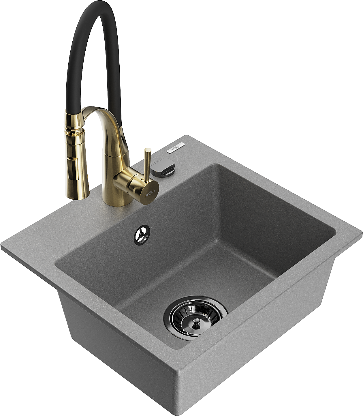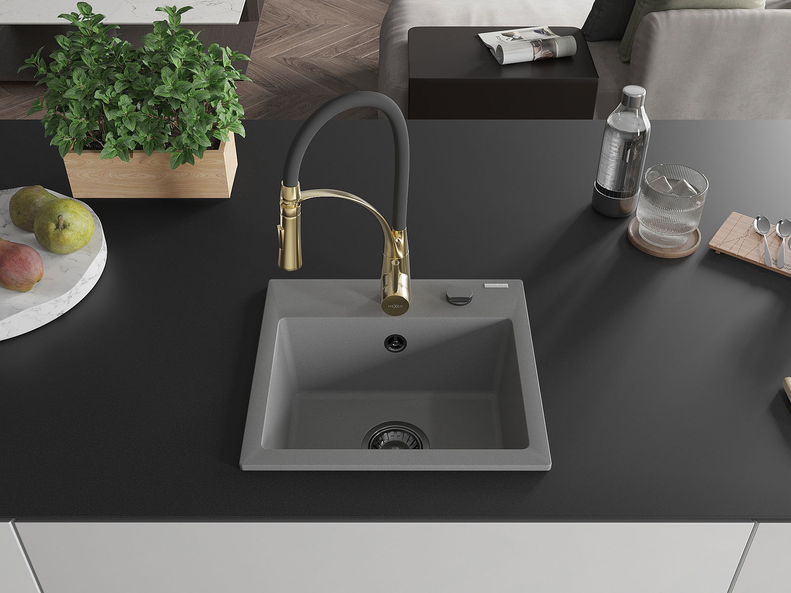 Mexen Milo 1-bowl granite kitchen sink with Aster tap, grey - 6505-71-73450-57-B