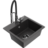 Mexen Milo granite kitchen sink 1-bowl with Aster kitchen tap, black/silver metallic - 6505-73-73450-07-B