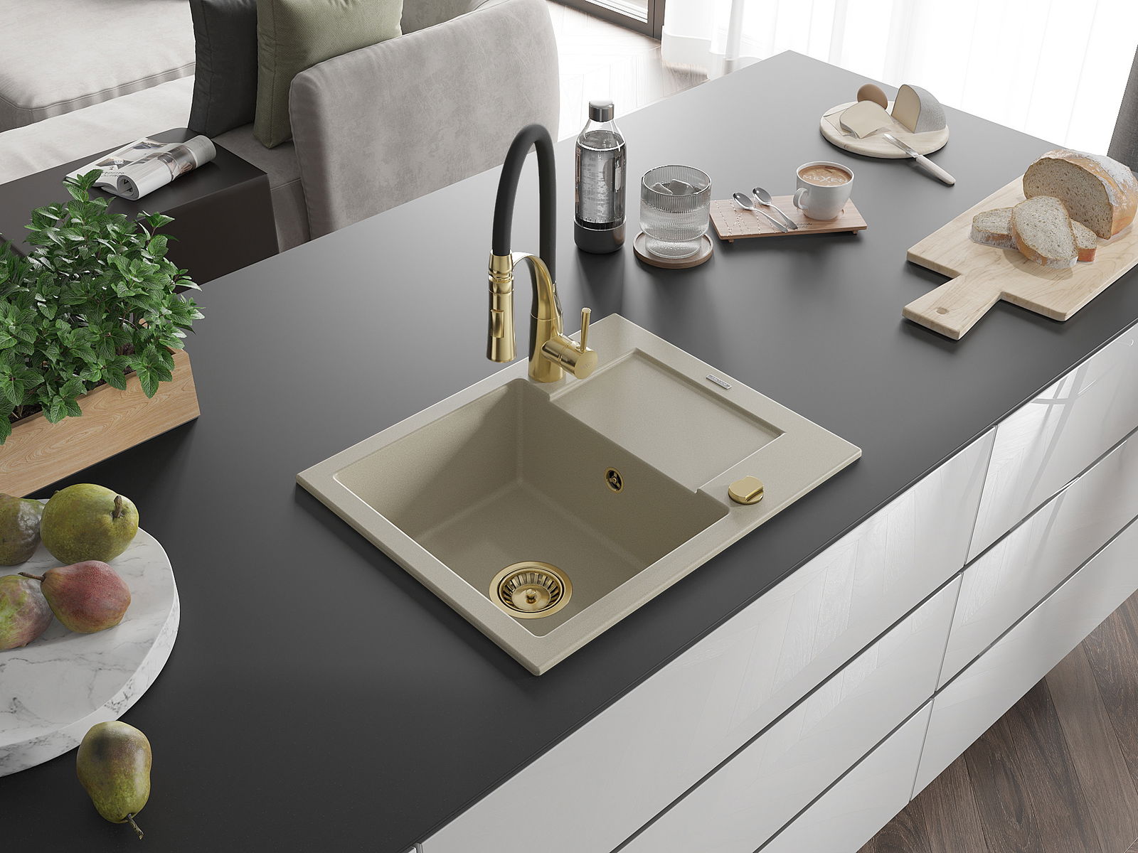 The sink is made of high quality granite. It is an elegant and, above all, practical complement to every kitchen, regardless of its style. High quality and granite durability ensure many years of use.