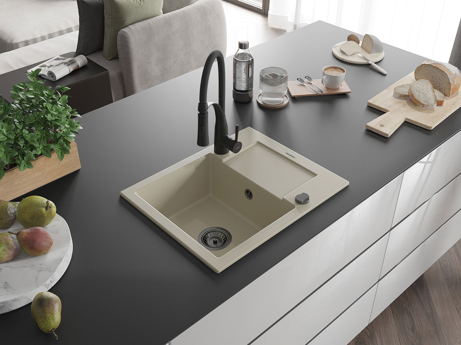 The surface of the sink is resistant to stains and discoloration, thanks to which it is easy to clean and retains its color for a long time. Aesthetic and practically complementing every kitchen.