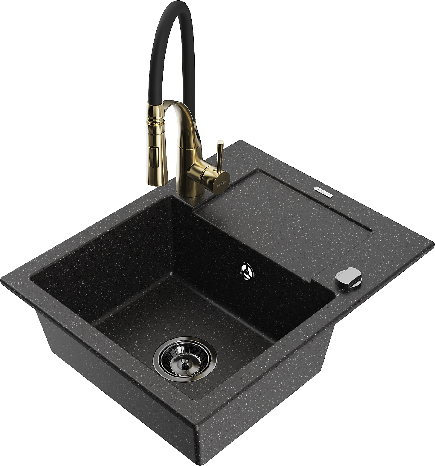 Mexen Enzo 1-bowl granite sink with drainer and Aster kitchen tap, black/silver metallic - 6506-73-73450-57-B