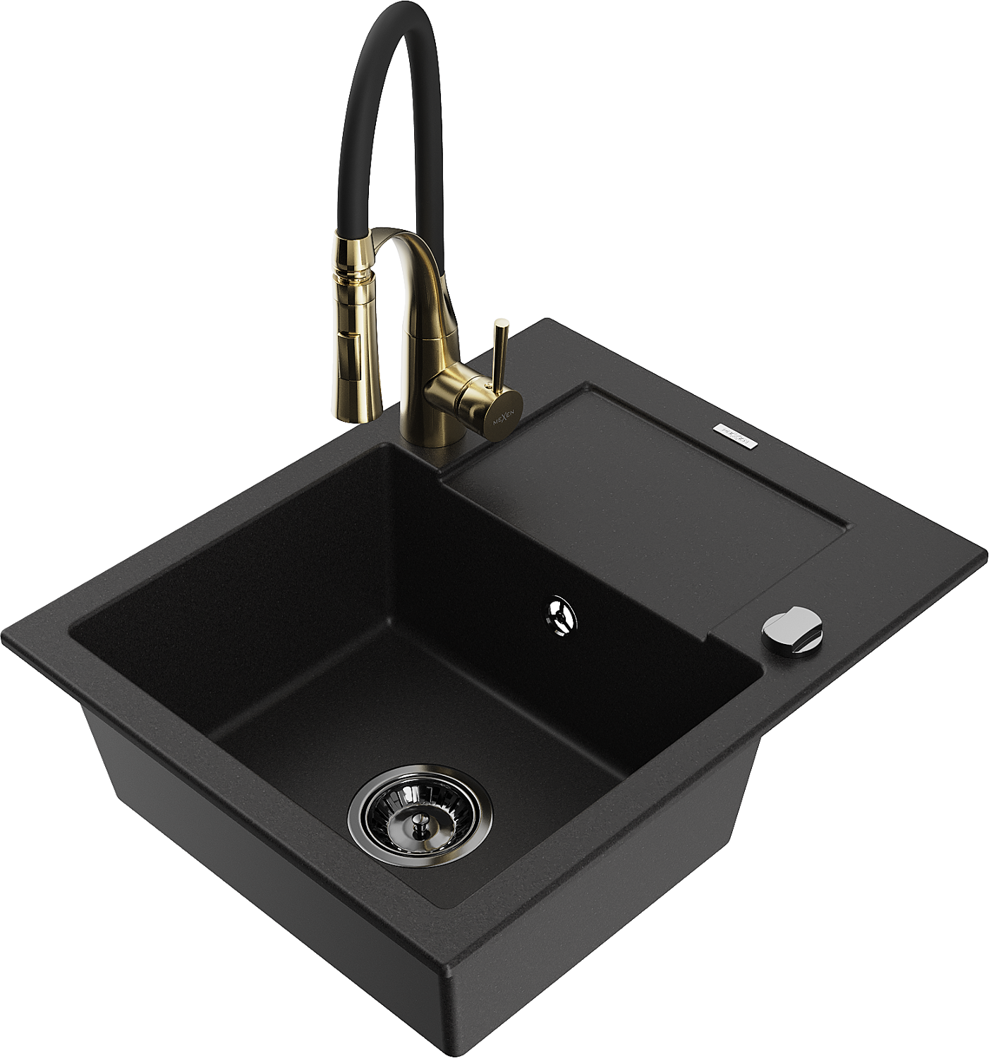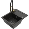Mexen Enzo granite sink 1-bowl with drainer and Aster kitchen tap, black - 6506-77-73450-57-B