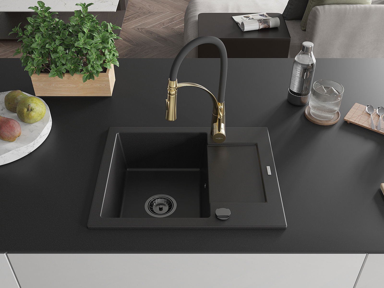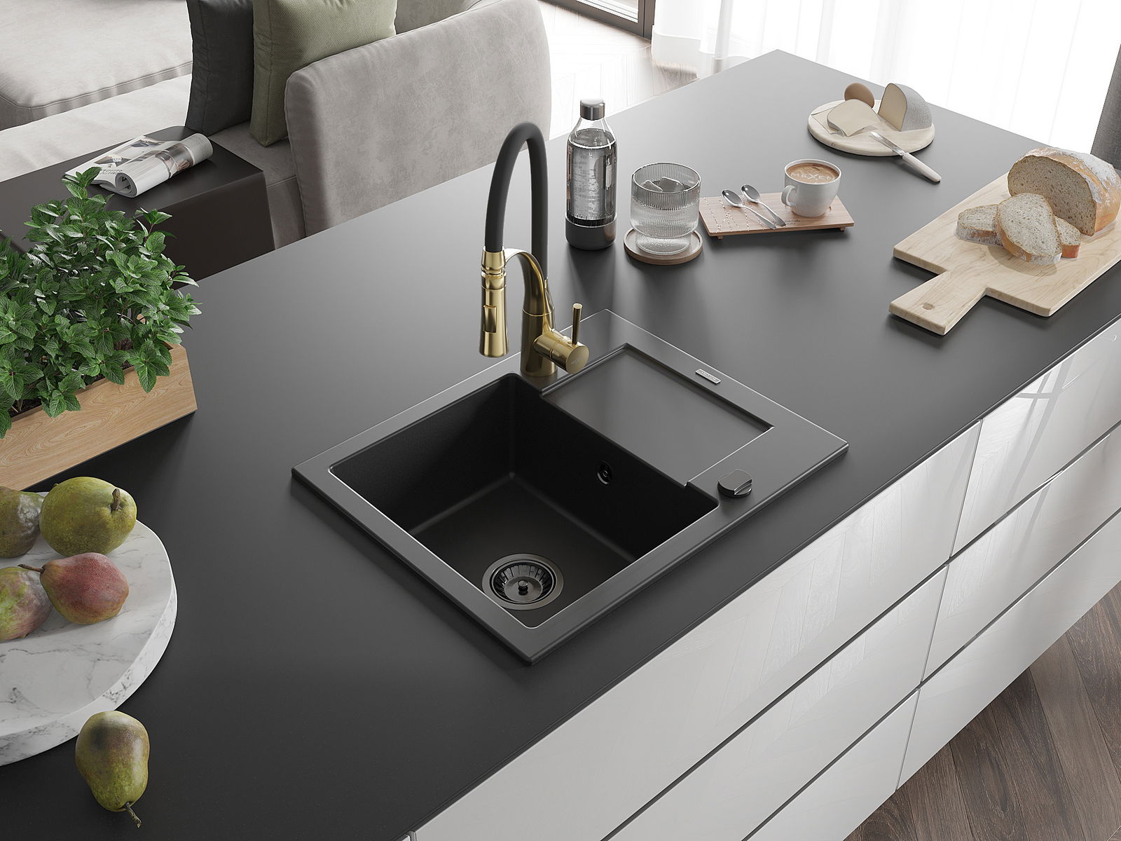 The sink is made of high quality granite. It is an elegant and, above all, practical complement to every kitchen, regardless of its style. High quality and granite durability ensure many years of use.