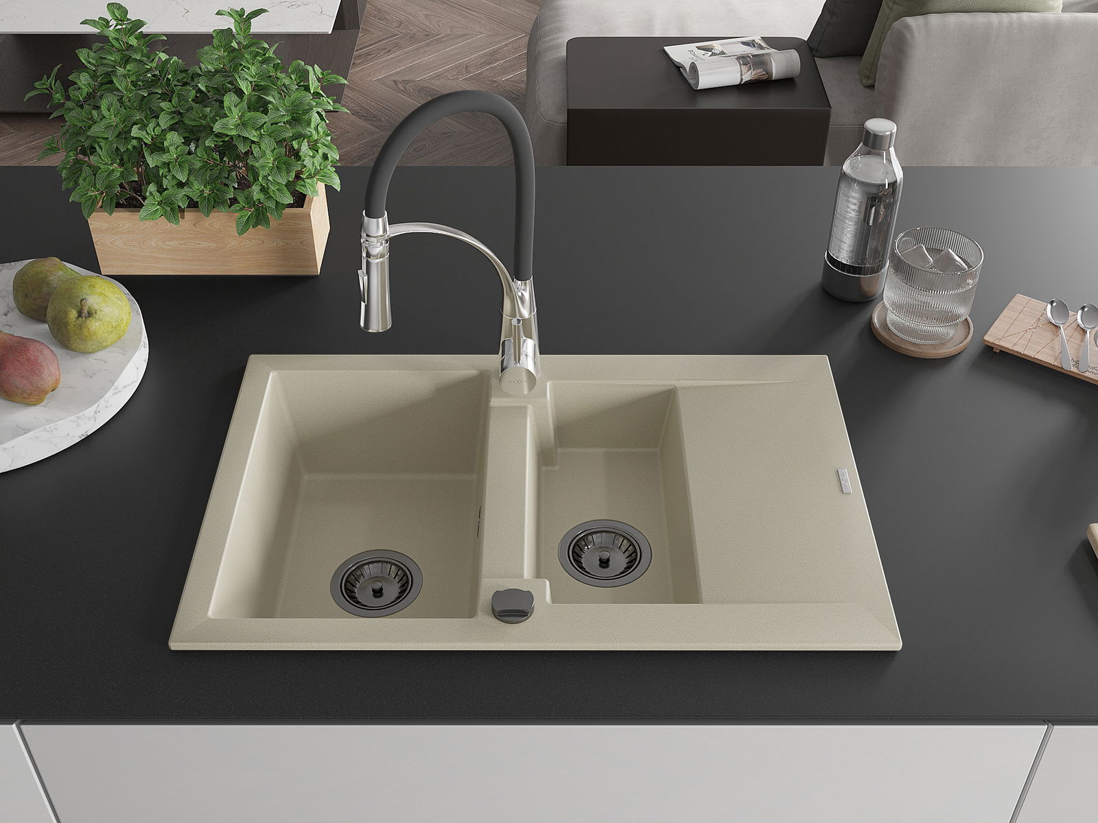 The sink is made of high quality granite. It is an elegant and, above all, practical complement to every kitchen, regardless of its style. High quality and granite durability ensure many years of use.