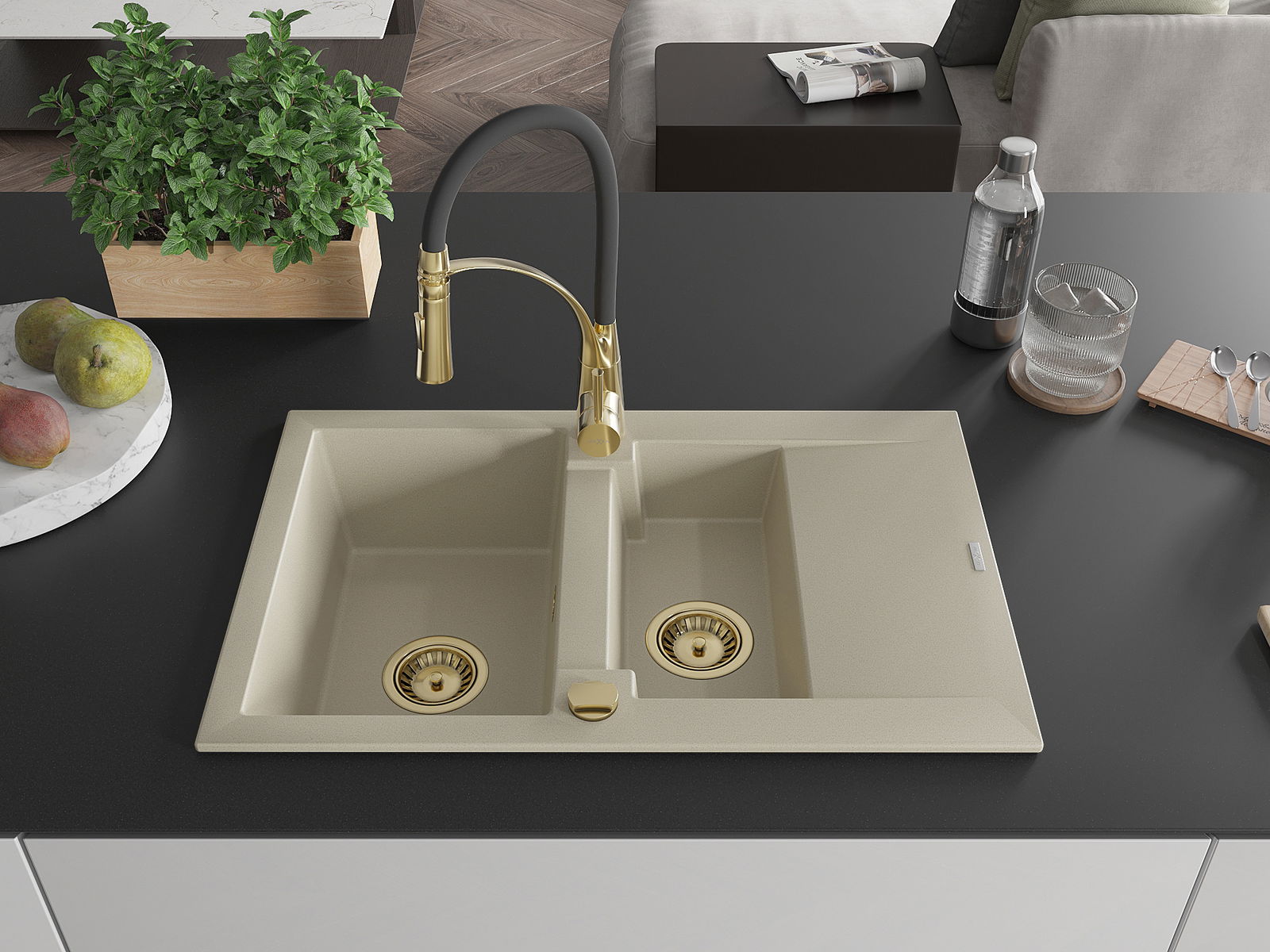 The sink is made of high quality granite. It is an elegant and, above all, practical complement to every kitchen, regardless of its style. High quality and granite durability ensure many years of use.