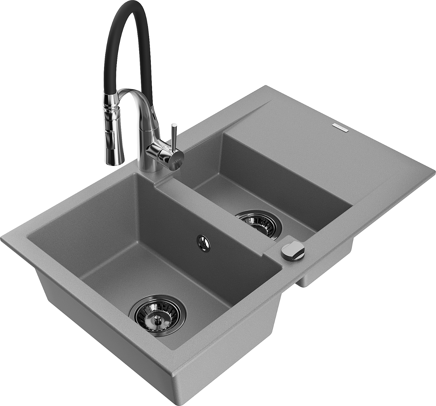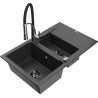 Mexen Gaspar granite sink 1.5-bowl with drainer and Aster kitchen tap, grey - 6507-71-73450-07-B