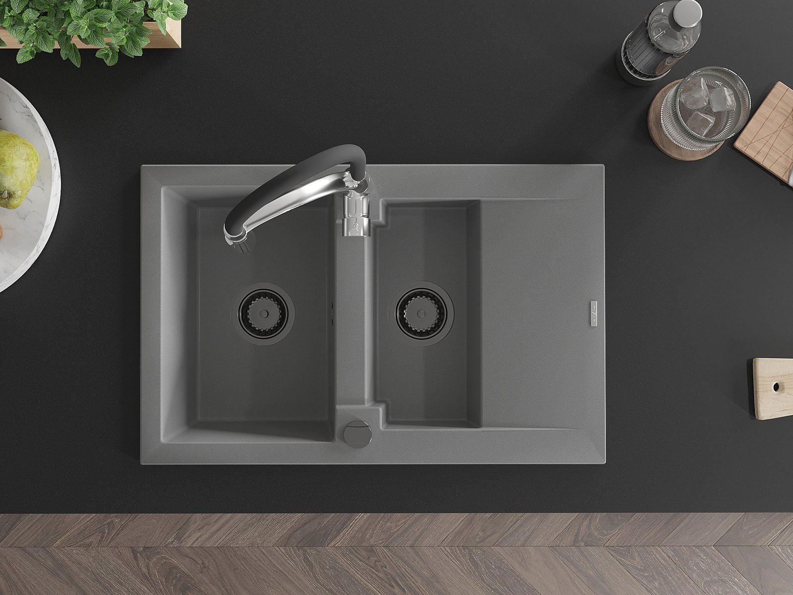 The sink is made of high quality granite. It is an elegant and, above all, practical complement to every kitchen, regardless of its style. High quality and granite durability ensure many years of use.