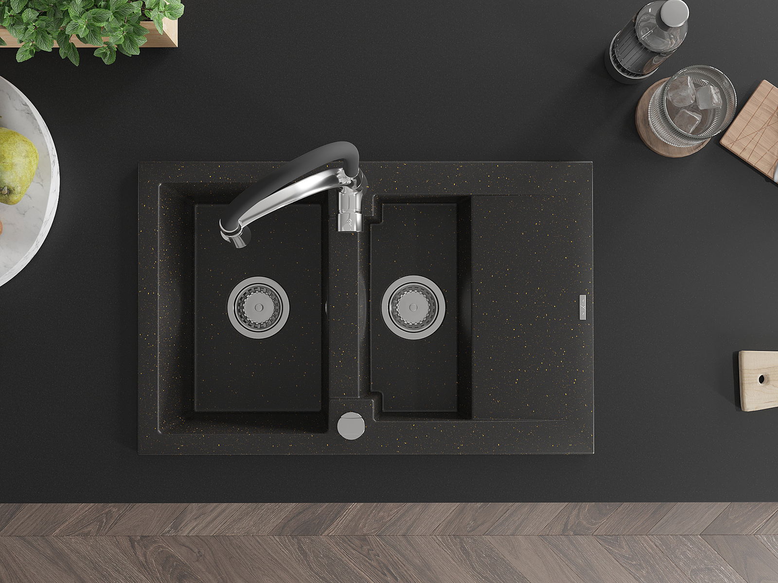 The sink is made of high quality granite. It is an elegant and, above all, practical complement to every kitchen, regardless of its style. High quality and granite durability ensure many years of use.