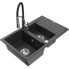 Mexen Gaspar granite sink 1.5-bowl with drainer and Aster kitchen tap, black - 6507-77-73450-07