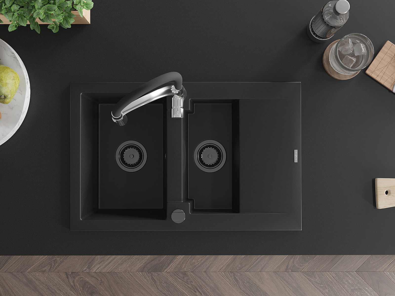 The sink is made of high quality granite. It is an elegant and, above all, practical complement to every kitchen, regardless of its style. High quality and granite durability ensure many years of use.