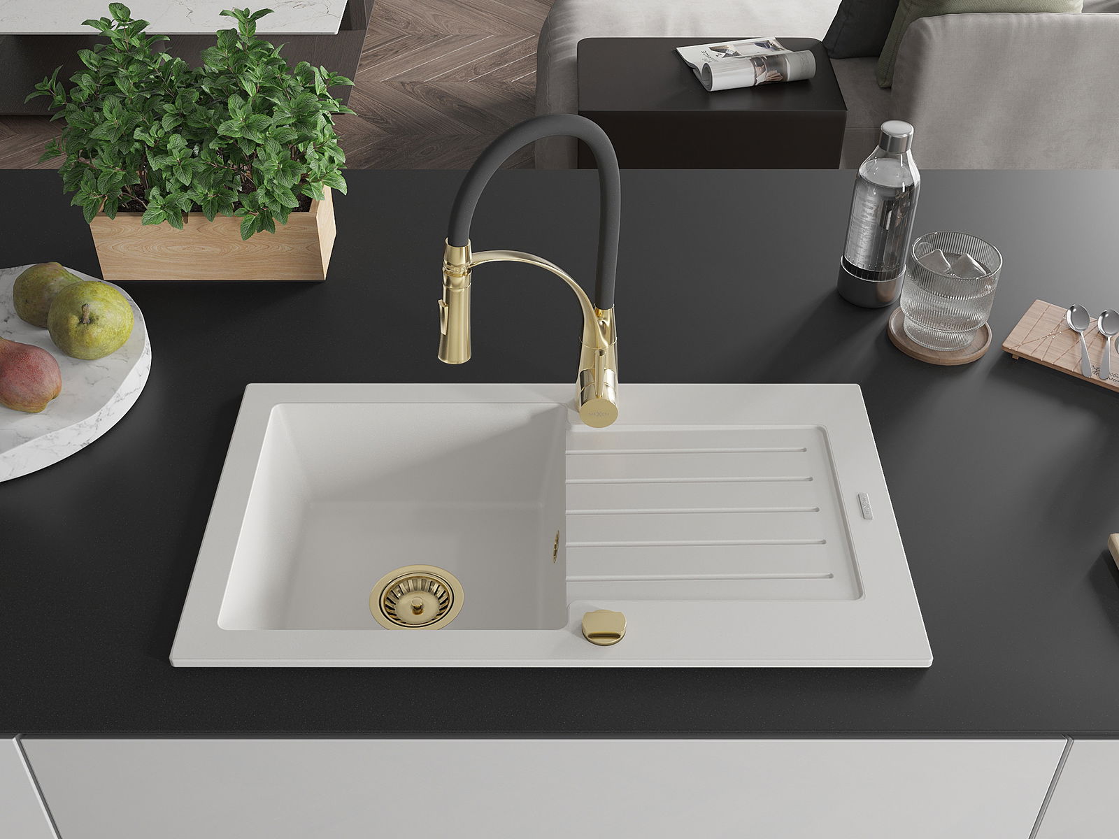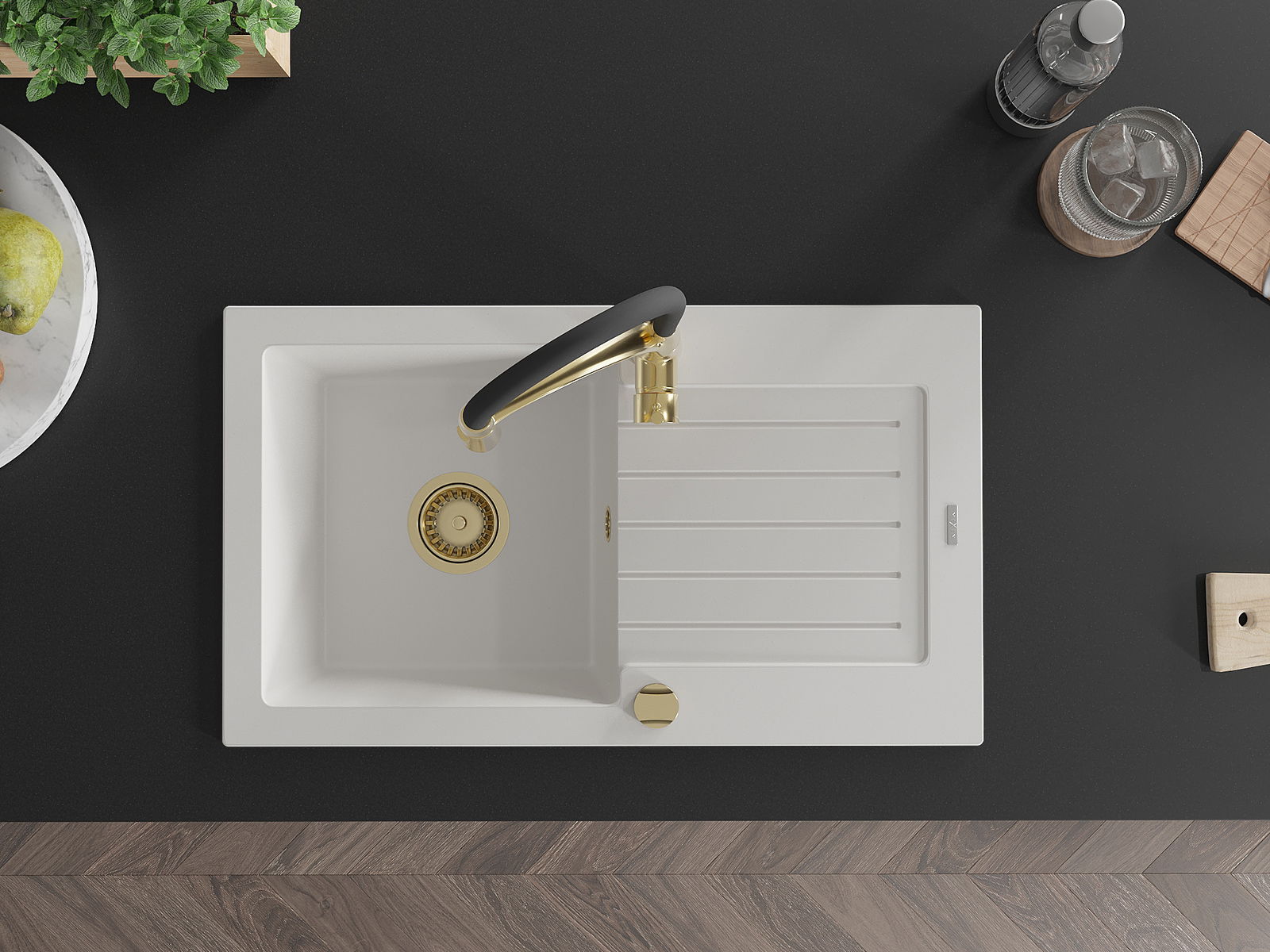 Choosing a sink with a draining board is a practical solution that allows you to set aside washed dishes or vegetables and fruits. The draining board makes daily cooking easier and helps maintain order in the kitchen.