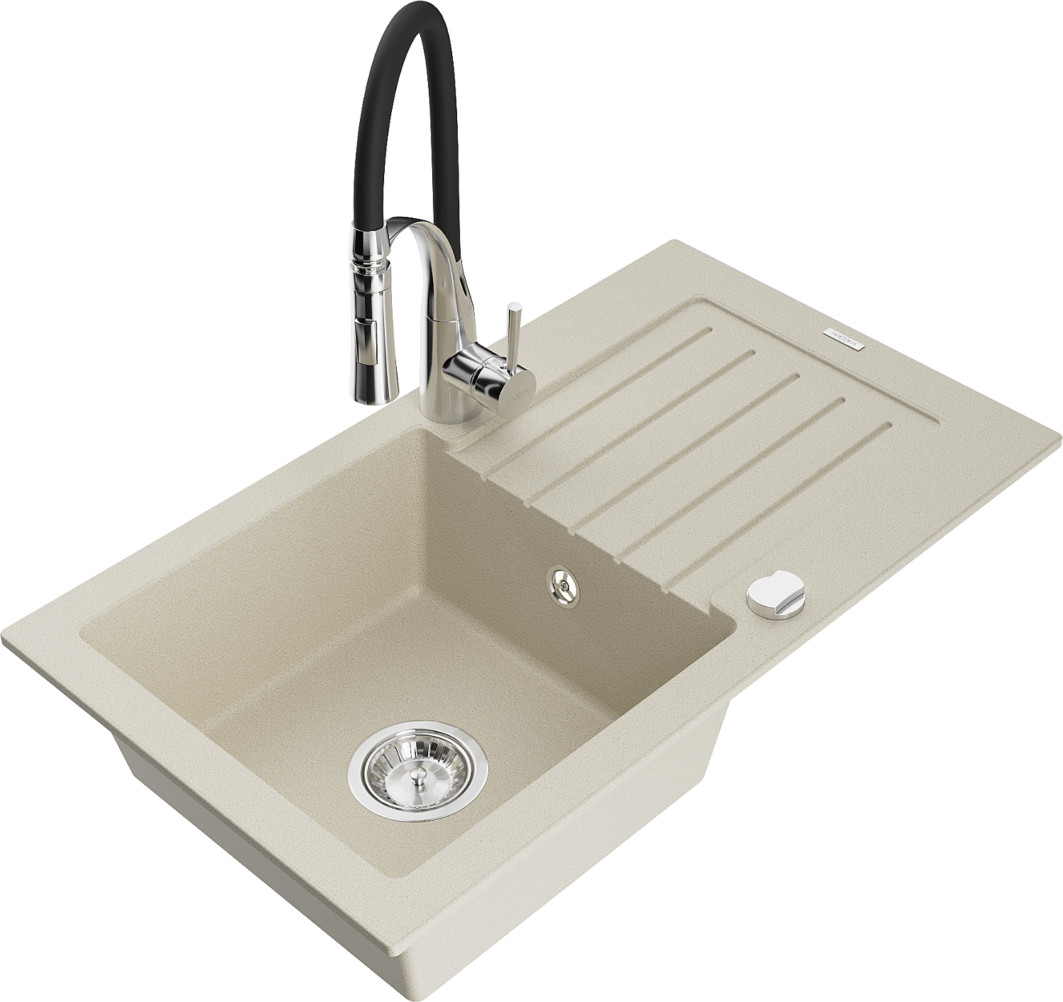 Mexen Pablo granite sink 1-bowl with drainer and Aster kitchen tap, beige - 6510-69-73450-07