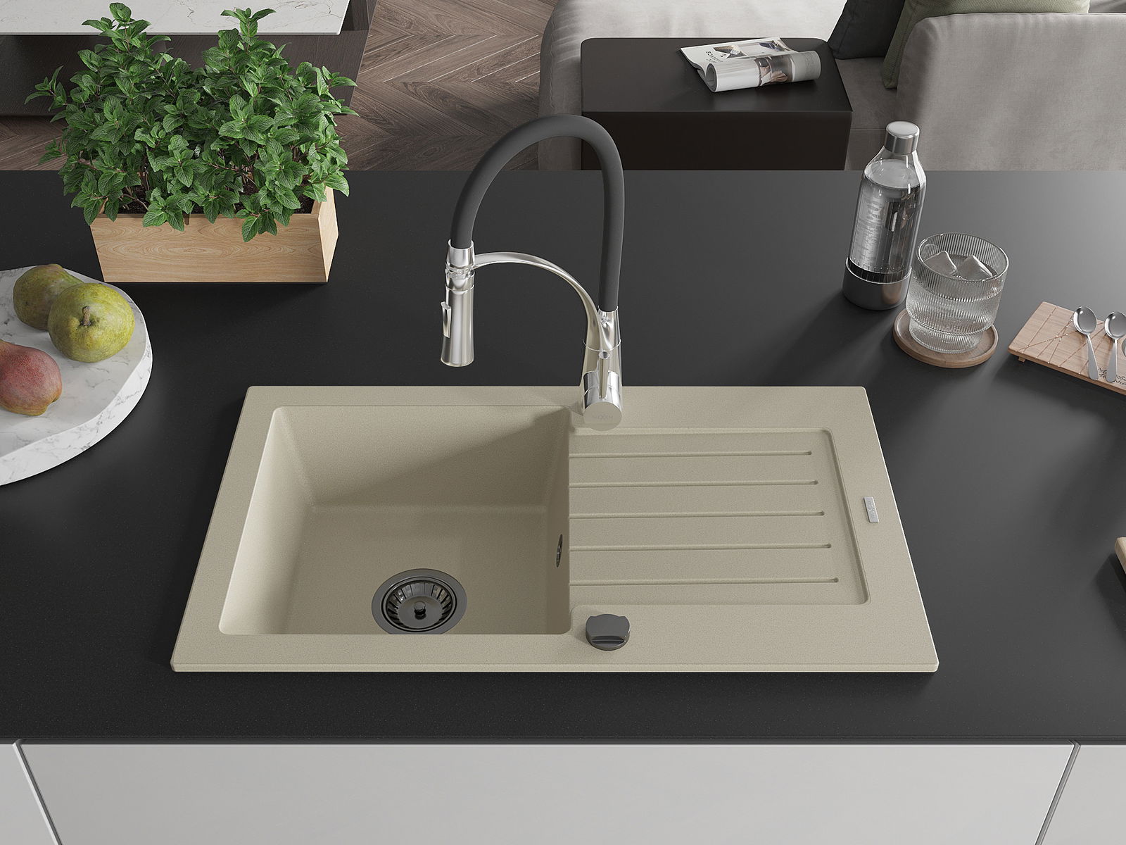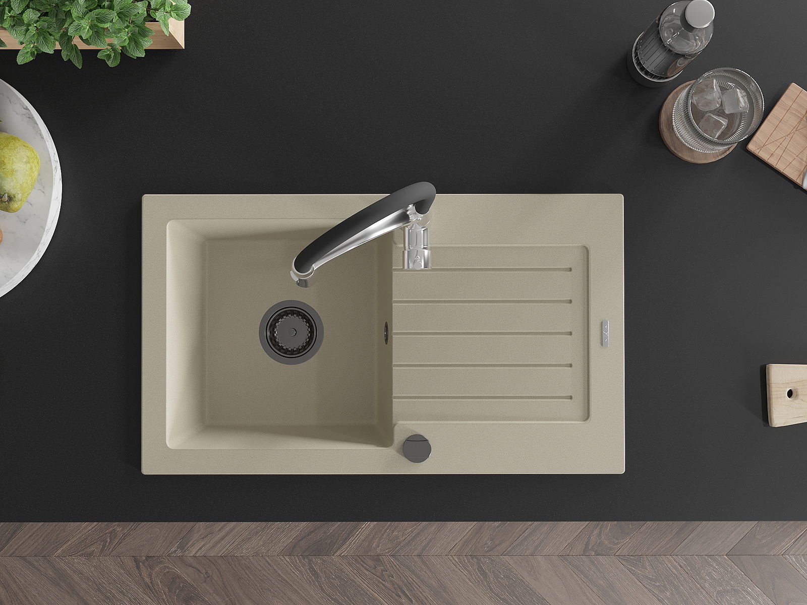 The sink is made from high-quality granite. It serves as an elegant and, above all, practical addition to any kitchen, regardless of its style. The high quality and durability of granite ensure many years of use.